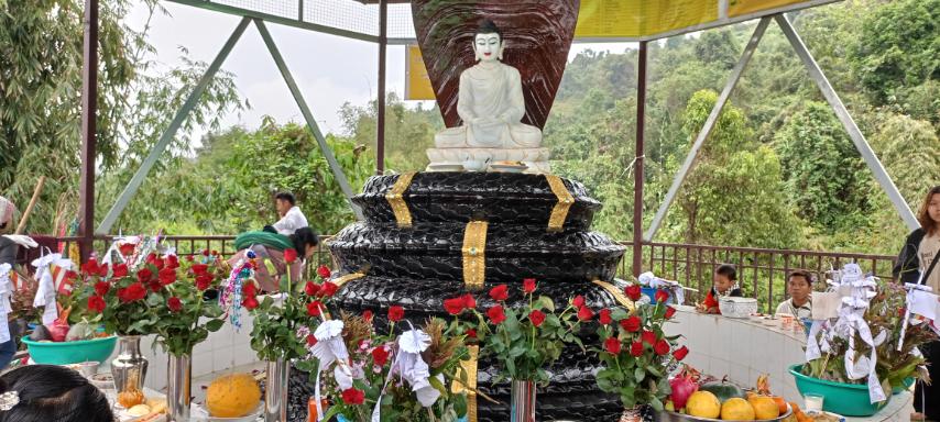 ကချင်ပြည်နယ်၊ ပူတာအိုခရိုင်၊ မချမ်းဘော့မြို့ အထင်ကရနေရာ ကျောက်နဂါးကုန်းတော်ပေါ်ရှိ အောင်တော်မူအေး စေတီတော်မြတ်ကြီး၌ အသံမစဲမဟာပဋ္ဌာန်းသိမ်းအောင်ပွဲနှင့် နဂါးရုံဘုရား ဗုဒ္ဓါဘိသေက အနေကဇာတင်လှူပွဲကို ယမန်နေ့နံနက် ၁၀ နာရီက စည်ကားသိုက်မြိုက်စွာကျင်းပခဲ့သည်။