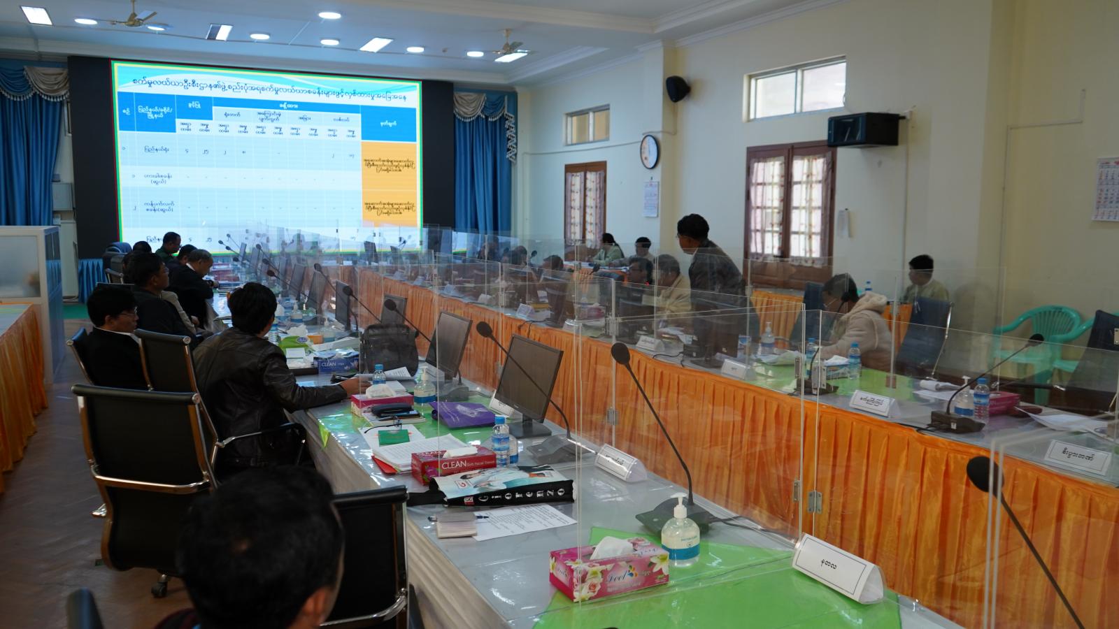 ထို့နောက် တင်ပြချက်များအပေါ် ပြည်နယ်လုံခြုံရေးနှင့် နယ်စပ်ရေးရာဝန်ကြီး ဗိုလ်မှူးကြီး ဟန်ဝင်းအောင်က အကြံပြုဖြည့်စွက်ဆွေးနွေးပြီး ပြည်နယ်ဝန်ကြီးချုပ်က လိုအပ်ချက်များ ပေါင်းစပ်ညှိနှိုင်း ဆောင်ရွက်ပေးကာ နိဂုံးချုပ်အမှာစကားပြောကြားခဲ့ကြောင်း သိရသည်။