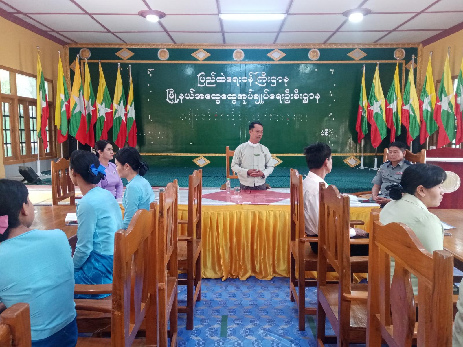 အစည်းအဝေးတွင် ခရိုင်လူမှုဝန်ထမ်းဦးစီးဌာနမှူး ဒေါ်ဥမ္မာဦးက မွေးကင်းစအရွယ်နှင့် အသက် ၁၈ နှစ်အောက်ကလေးသူငယ်များ၏ အခွင့်အရေးနှင့်ရပိုင်ခွင့်အတွက် မြို့နယ်အတွင်း ဆောင်ရွက်နေသည့် လုပ်ငန်းစဉ်များကို ရှင်းလင်းဆွေးနွေးကာ ဆက်လက်ဆောင်ရွက်လိုသည့် လုပ်ငန်းအကြောင်းအရာများကို မြို့နယ်ကလေးသူငယ်အခွင့်အရေးများဆိုင်ရာကော်မတီ အဖွဲ့ဝင်များ၊ တာဝန်ရှိသူများနှင့် ညှိနှိုင်းဆွေးနွေးခဲ့သည်။