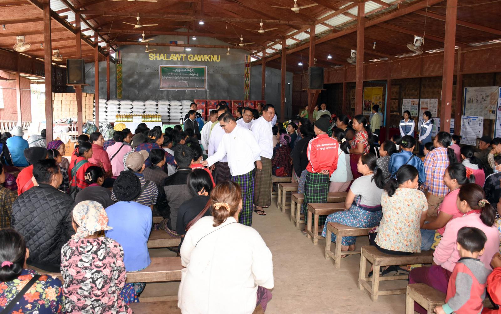 ထိုသို့ ထောက်ပံ့ပစ္စည်းများ ပေးအပ်ရာတွင် ပြည်နယ်ဝန်ကြီးချုပ်က (၁၀) စုနှစ်ကြာ နေရပ်စွန့် ခွာတိမ်းရှောင်နေထိုင်ခဲ့ကြသည့် ပြည်သူများအနေဖြင့် ယနေ့နေရပ်ကျေးရွာများသို့ပြန်လည်ရွှေ့ ပြောင်းနေထိုင်ကြမည်ဖြစ်သည့်အတွက် မိမိတို့အနေဖြင့် လတ်တလော နေထိုင်စားသောက်မှု အဆင်ပြေစေရေးအတွက်ယခုလိုထောက်ပံ့ပေးရခြင်းဖြစ်ကြောင်း၊ နေရပ်ကျေးရွာများတွင်လည်း ပညာရေး၊ ကျန်းမာရေးနှင့် လူမှုစီးပွားဘဝဖွံ့ဖြိုးတိုးတက်ရေးအတွက် ဆက်လက်ပံ့ပိုးကူညီ ဆောင်ရွက်ပေးသွား မည်ဖြစ်ကြောင်း တိုက်တွန်းအားပေးပြောကြားသည်။