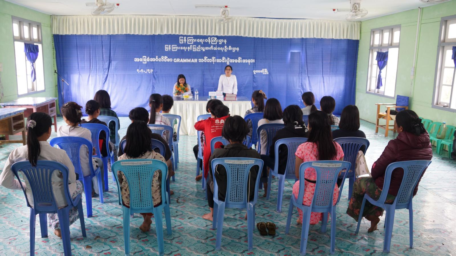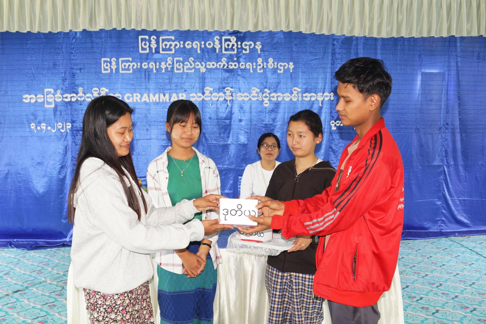 ကချင်ပြည်နယ်၊ ပူတာအိုခရိုင်ပြန်ကြားရေးနှင့်ပြည်သူ့ဆက်ဆံရေးဦးစီးဌာန၊ အခြေခံပညာဦးစီးဌာနနှင့် Women Club အဖွဲ့တို့ ပူးပေါင်းမှုဖြင့် နွေရာသီကျောင်းပိတ်ရက်များတွင် ကျောင်းသားလူငယ်များအချိန်ကို အကျိုးရှိစွာအသုံးချတတ်စေရန်၊ လူငယ်များအတွက် အထောက်အပံ့ဖြစ်စေမည့် အတတ်ပညာအသိပညာ တိုးပွားစေရန်နှင့်သင်တန်းမှရရှိသည့် အတတ်ပညာ အသိပညာတို့ဖြင့် လူငယ်များဘဝဖွံ့ဖြိုးတိုးတက် လာစေရန်ရည်ရွယ်၍ ဖိနပ်ချုပ်သင်တန်းနှင့်အခြေခံအင်္ဂလိပ်စာ Grammar သင်တန်း ဖွင့်လှစ်သင်ကြားပေး လျက်ရှိရာ အခြေခံအင်္ဂလိပ်စာ Grammar သင်တန်းဆင်းပွဲအခမ်းအနားကို ယမန်နေ့နံနက်ပိုင်းက ပူတာအို ခရိုင်ပြန်ကြားရေးနှင့်ပြည်သူ့ဆက်ဆံရေးဦးစီးဌာန Community Centre ခန်းမ၌ကျင်းပပြုလုပ်သည်။
