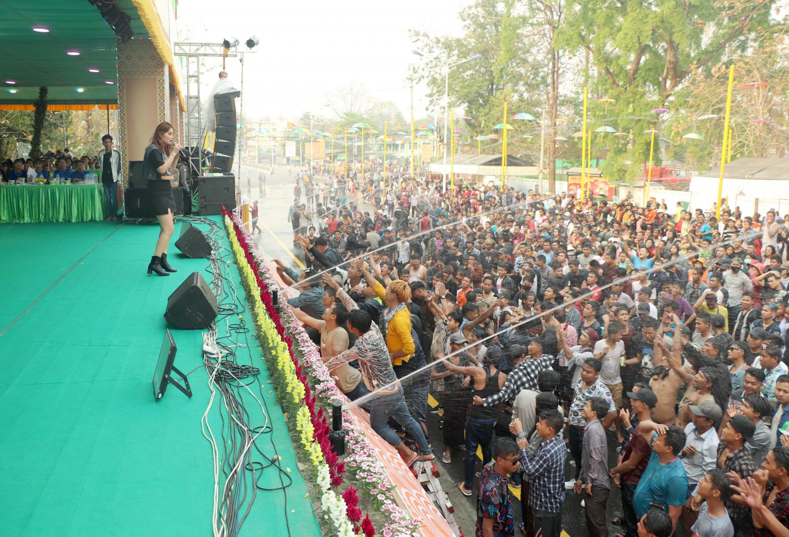 ထို့အပြင် မဟာသင်္ကြန်အကျနေ့ ညနေပိုင်းကလည်း ကချင်ပြည်နယ်ဝန်ကြီးချုပ်နှင့် ဇနီး၊ တာဝန်ရှိသူများသည် ဗဟိုမဏ္ဍပ်၌ အေးချမ်းပျော်ရွှင်စွာ ရေကစားလျက်ရှိသည့် ပြည်သူများနှင့်အတူ နိုင်ငံကျော်တေးသံရှင်များနှင့် ဒေသခံတိုင်းရင်းသား တေးသံရှင်များ၏ သီဆိုဖျော်ဖြေမှုများ၊ ယိမ်းအကအလှများဖြင့် ကပြဖျော်ဖြေမှုများကို ကြည့်ရှုအားပေးခဲ့ကြသည်။