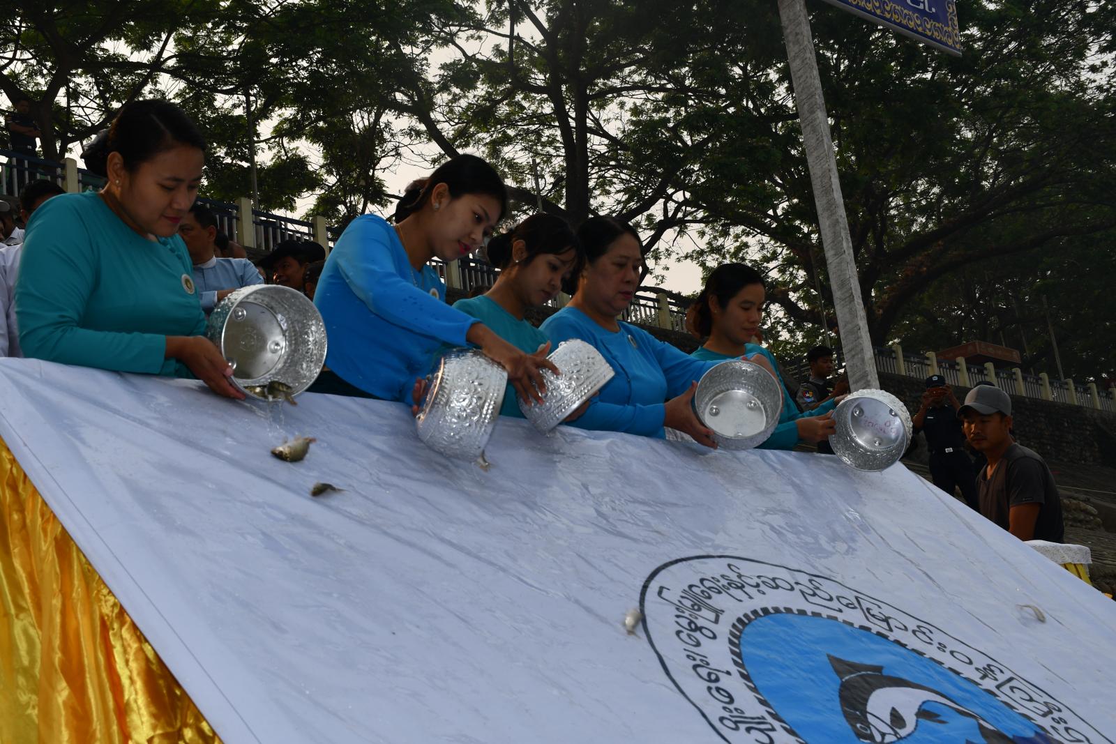 ထိုသို့ဇီဝိတဒါန ငါးလွှတ်ရာတွင် ဗန်းမော်ခရိုင်စီမံအုပ်ချုပ်ရေးအဖွဲ့ဥက္ကဋ္ဌ ဦးခင်မောင်လွင်နှင့် တာဝန်ရှိသူများ၊ ခရိုင်နှင့်မြို့နယ်အဆင့်တာဝန်ရှိသူများ၊ ခရိုင်နှင့်မြို့နယ် အမျိုးသမီးရေးရာအဖွဲ့၊ ခရိုင်နှင့်မြို့နယ် မိခင်နှင့်ကလေး စောင့်ရှောက်ရေးအသင်း၊ လူမှုရေးအသင်းအဖွဲ့များတက်ရောက် ကြပြီး ရွှေဝါငါးကြင်းသားပေါက်ကောင်ရေ (၂) သိန်းနှင့် ငါးခုံးမ သားပေါက်ကောင်ရေ (၁) သိန်း စုစုပေါင်း (၃) သိန်းကို ဧရာဝတီမြစ်အတွင်းသို့ တပျော်တပါးစုပေါင်းကုသိုလ်ယူ ဇီဝိတဒါနငါးလွှတ်ထည့် ခဲ့ကြပါသည်။