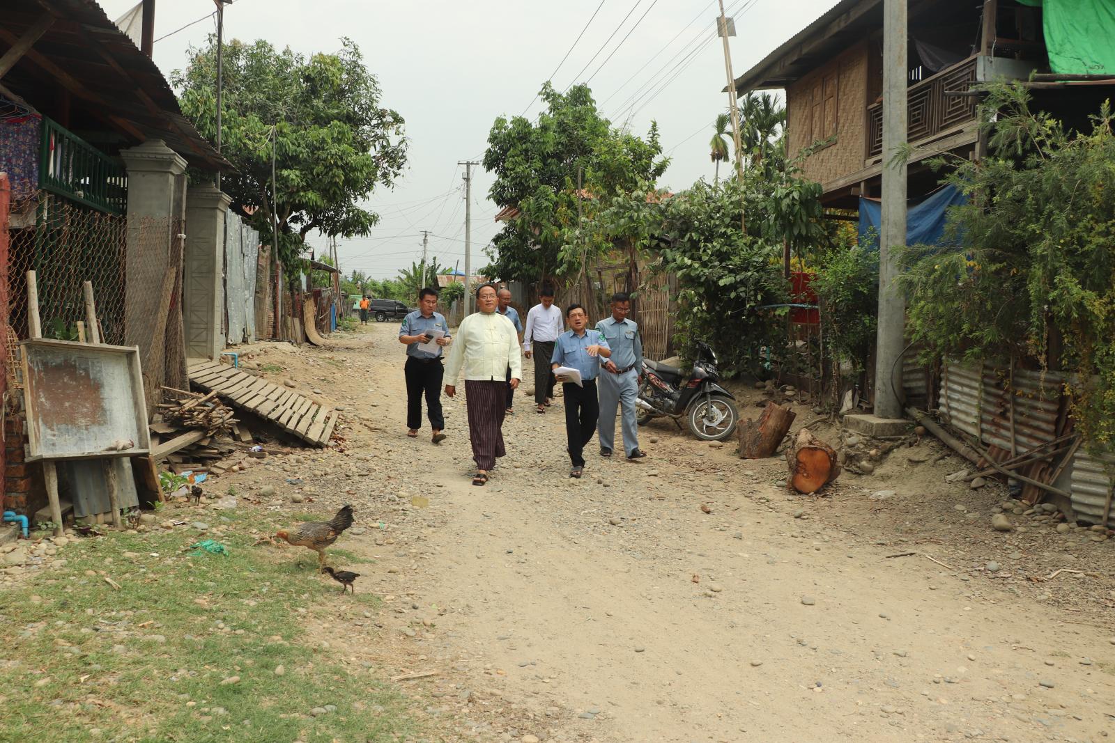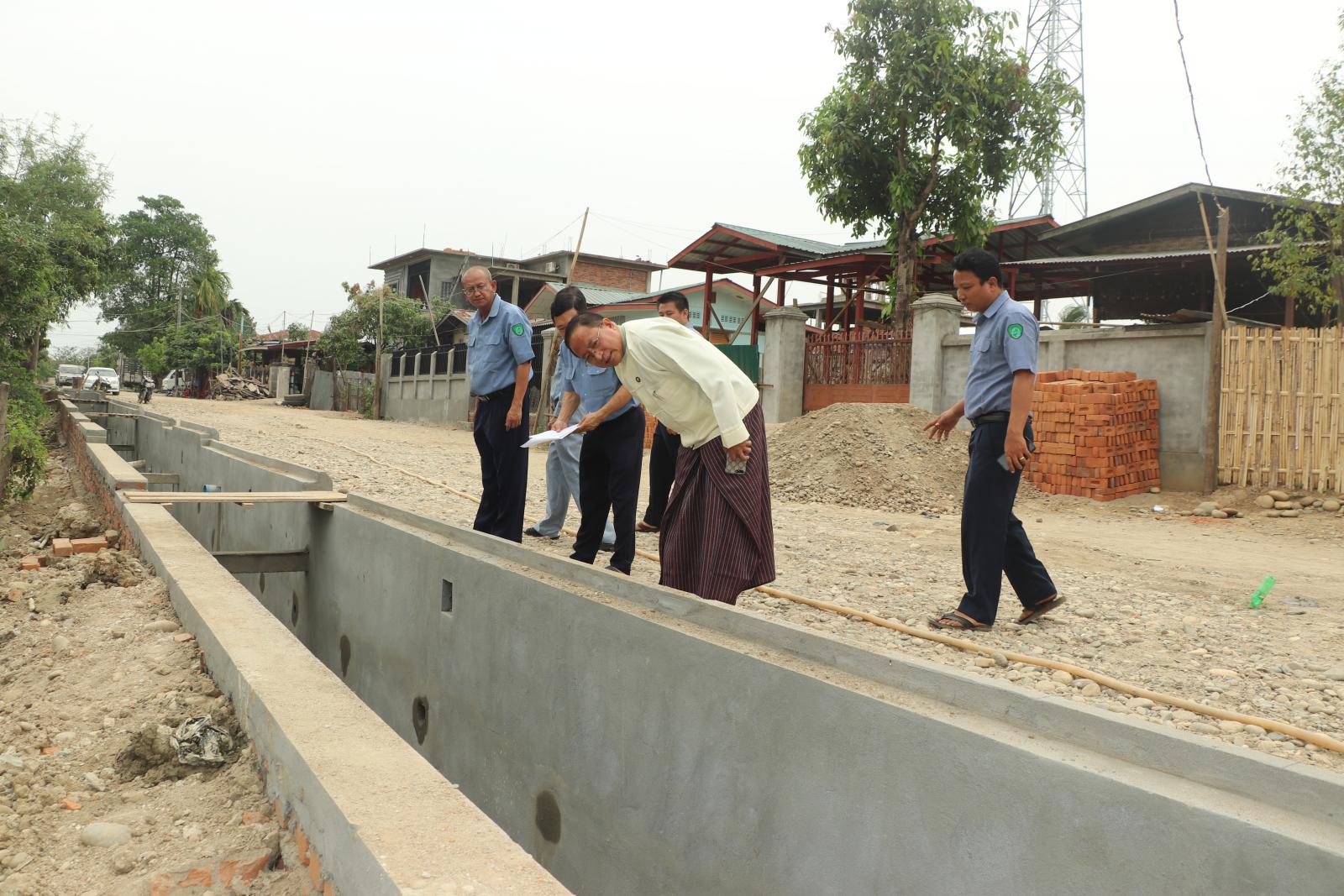 ယင်းနောက် အမှတ်(၁)ရပ်ကွက်၊ အမှတ်(၄)လမ်းမတစ်လျှောက် ရန်ပုံငွေကျပ် (၆၉ ဒဿမ ၈၅) သန်းဖြင့် ၆၂၂ ပေအရှည်၊ အကျယ် ၄ ပေရှိ အုတ်ရေမြောင်းတည်ဆောက်သွားမည့် အခြေအနေ များကို ကြည့်ရှုစစ်ဆေးပြီး ရပ်ကွက်(၂)အတွင်း ရန်ပုံငွေကျပ် (၃၀ ဒဿမ ၇၅၀) သန်းဖြင့် ဦးအောင်ဇေယျလမ်း (KBC ရှမ်းဘုရားကျောင်းရှေ့) လမ်းအရှည်ပေ ၄၃၀ အား အပိုင်း (၂)ပိုင်းခွဲ၍ ကွန်ကရစ်လမ်းခင်းခြင်း လုပ်ငန်းဆောင်ရွက်သွားမည့် အခြေအနေများကို ကြည့်ရှုစစ်ဆေးကာ ပြည်နယ်ဝန်ကြီးက လမ်းလုပ်ငန်းများအား စနစ်တကျကွင်းဆင်းတိုင်းတာစစ်ဆေးပြီး ရေရှည်တည် တံ့စေရေး အရည်အသွေးပြည့်မီစွာဖြင့် သတ်မှတ်ဘဏ္ဍာနှစ်အတွင်း အချိန်မီပြီးစီးရေး တာဝန်ရှိသူ များအား မှာကြားခဲ့သည်။