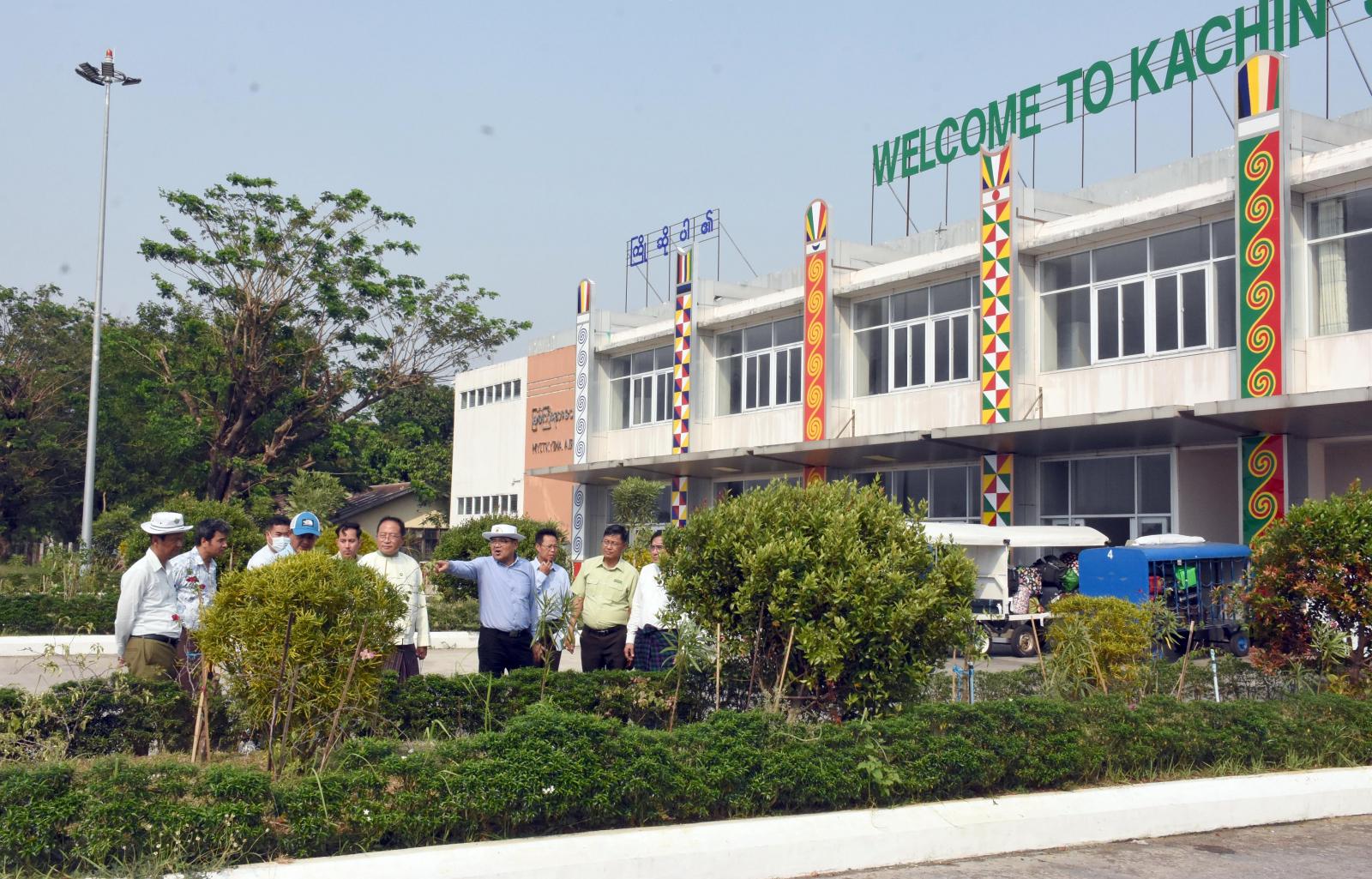 ထို့နောက် ပြည်နယ်ဝန်ကြီးချုပ်သည် မြစ်ကြီးနားလေဆိပ်ရှေ့ မလိခပန်းခြံငယ်အတွင်း စက္ကူပန်းခြံများဖြင့် လှပနေစေရေး စိုက်ပျိုးဆောင်ရွက်ထားရှိမှုနှင့် လေဆိပ်ဝင်းအတွင်း အရိပ်ရအပင်များ၊ နွယ်သာဂီ၊ စက္ကူပန်းပင်များ စိုက်ပျိုးဆောင်ရွက်ထားရှိမှု အခြေအနေများကို ကြည့်ရှုစစ်ဆေးပြီး လေဆိပ်အဝင် လမ်းဘေး ဝဲ/ယာများနှင့် မြေလွတ်ကျယ်သည့်နေရာများတွင် အလားတူ စက္ကူပန်းပင်များ တိုးချဲ့စိုက်ပျိုး၍ မြေယာပြုပြင်ဆောင်ရွက်ခြင်းများကို စဉ်ဆက်မပြတ် ထိန်းသိမ်းစိုက်ပျိုးနိုင်ရေး တာဝန်ရှိသူများအား မှာကြားခဲ့သည်။