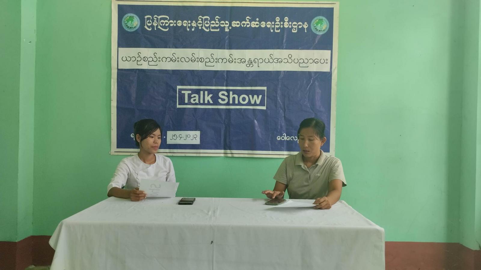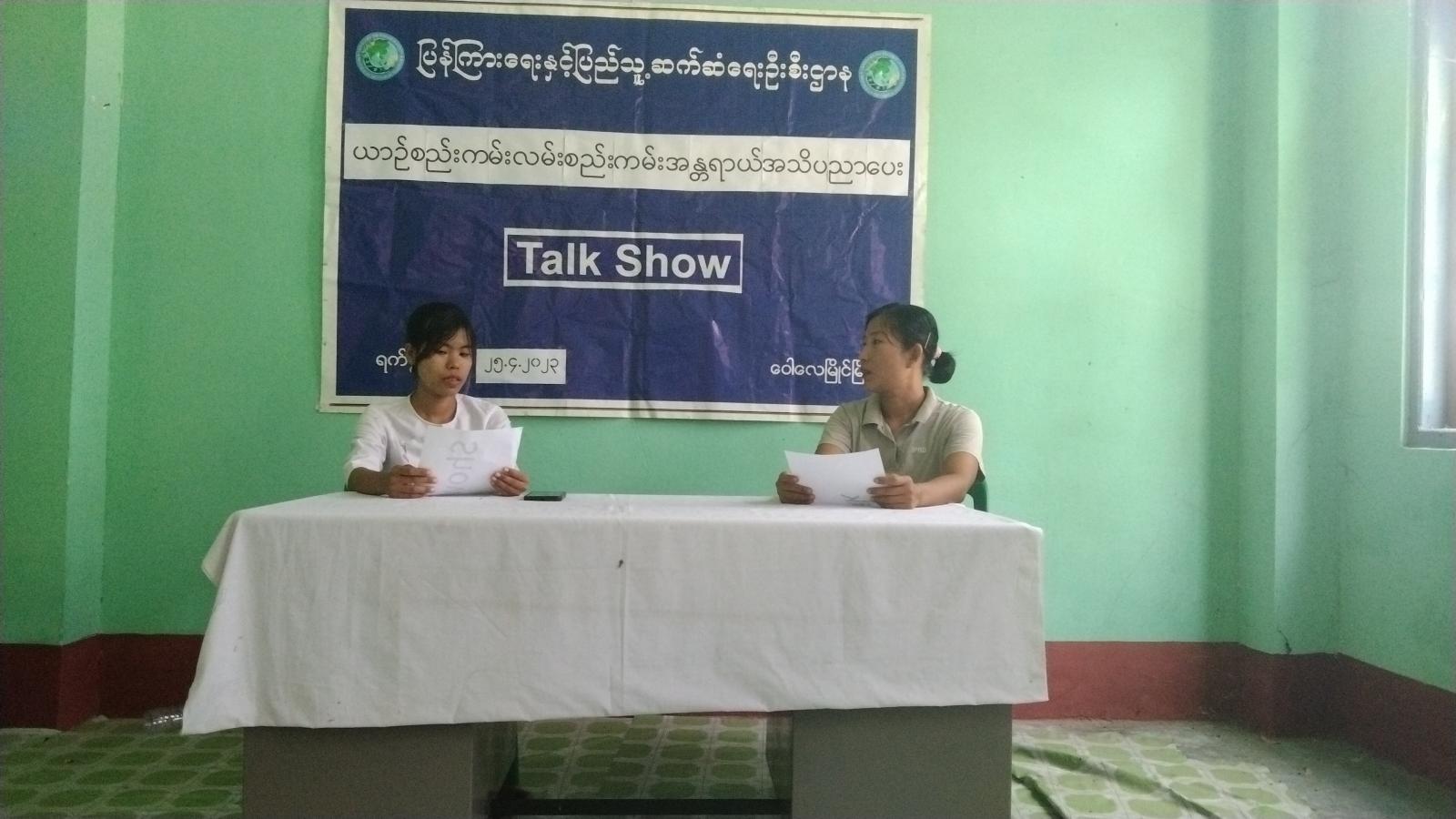 ဆွေးနွေးပွဲတွင် ပြန်ကြားရေးနှင့်ပြည်သူ့ဆက်ဆံရေးဦးစီးဌာန ဒုတိယဦးစီးမှူး ဒေါ်နှင်းဝေဦးက (Talk Show) ပြုလုပ်ရခြင်း၏ ရည်ရွယ်ချက်၊ ယာဉ်အန္တရာယ်ကင်းရှင်းရေးနှင့် မော်တော်ယာဉ် စီမံခန့်ခွဲမှုဥပဒေများ၊ မော်တော်ဆိုင်ကယ်မောင်းနှင်သူများ လိုက်နာရမည့်အချက်များနှင့် ယာဉ်အန္တရာယ်၊ လမ်းအန္တရာယ်ကင်းရှင်းစေရေး ထုတ်ပြန်ထားသောလမ်းညွှန်များ၊ လမ်းအမှတ်အသားများ၊ အချက်ပြများ စသည့်အချက်များကိုလည်းကောင်း၊ အငယ်တန်းစာရေး ဒေါ်ဖြူစင်မိုးက မော်တော်ဆိုင်ကယ်မောင်နှင်သူများအနေဖြင့် ဆိုင်ကယ်ဦးထုပ်များကို စနစ်တကျဆောင်းရန်နှင့် မော်တော်ယာဉ်မောင်းနှင်နေစဉ် ဖုန်းပြောခြင်း၊ မူးယစ်သောက်စားခြင်းမှ ရှောင်ကြဉ်ရန်၊ မော်တော်ဆိုင်ကယ် စီးနှင်းပါက နှစ်ဦးထက်ပို၍စီးနှင်းခြင်းမပြုရန်နှင့် ယာဉ်စည်းကမ်း၊ လမ်းစည်းကမ်းများနှင့်ပတ်သတ်၍ လိုက်နာရမည့်အချက်များကို အသိပညာ ပေးဆွေးနွေးခဲ့ကြကြောင်း သိရသည်။