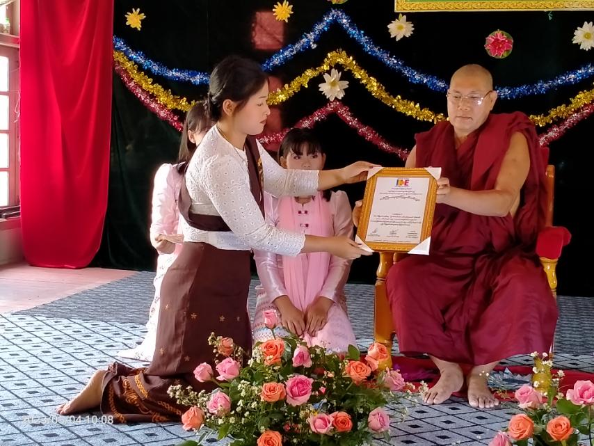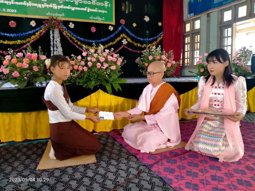 ရှေးဦးစွာ နမောတဿ သုံးကြိမ်ရွတ်ဆို၍ ဖွင့်လှစ်ခဲ့ပြီး ရတနာမြတ်သုံးပါးနှင့် မိဘဆရာသမားတို့အား ရှိခိုးကန်တော့၍ သရဏဂုံနှင့် ငါးပါးသီလခံယူဆောက်တည်ခြင်း၊ နမ့်ဖားကျောင်းဆရာတော် ဘဒ္ဒန္တမဏ္ဍလ၊ တံခွန်တိုင်ကျောင်းဆရာတော် ဘဒ္ဒန္တဣန္ဒာသဖ၊ မင်းလှကျောင်းဆရာတော် ဘဒ္ဒန္တဝိစိတ္တတို့ထံမှ သြဝါဒခံယူပြီး အလှူရှင်များက ရေစက်ချအမျှပေးဝေခြင်း၊ သင်တန်းဆရာ၊ ဆရာမများအား သင်ကြားရေးဂုဏ်ပြုမှတ်တမ်းလွှာများပေးအပ်ခြင်းများ ပြုလုပ်ခဲ့သည်။