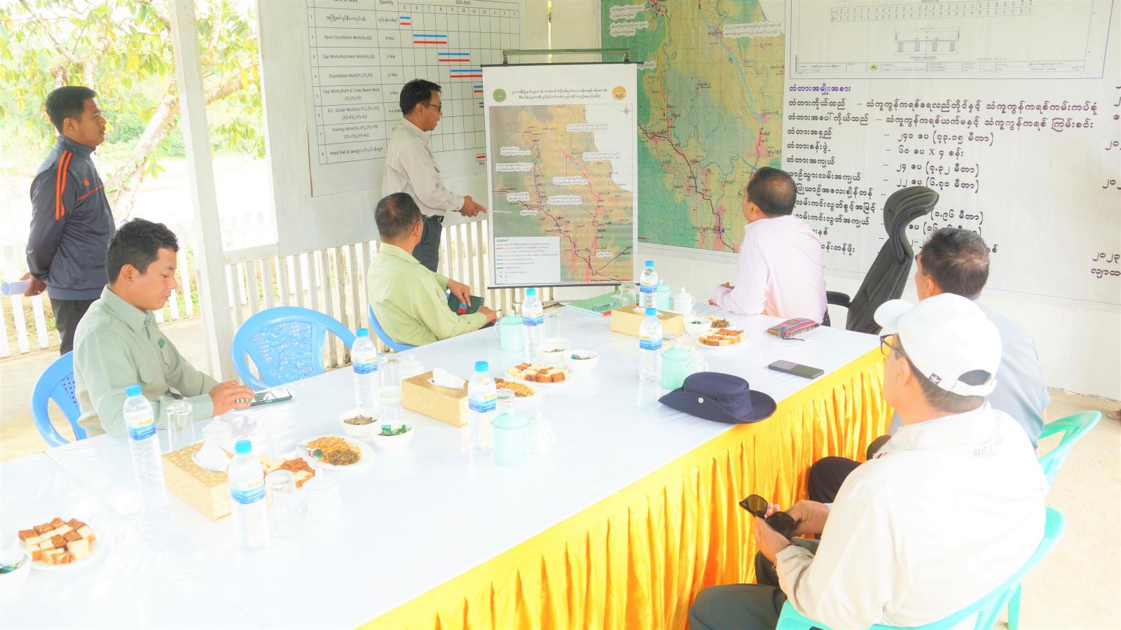 ယင်းနောက် အဆိုပါ နမ်ပလပ်ချောင်းကူးအရှည် ၂၄၀ ပေရှိ သံကူကွန်ကရစ်တံတား တည်ဆောက်ပြီးစီးမှု အခြေအနေများနှင့် ပူတာအိုလွင်ပြင်ပတ်လမ်းတစ်လျှောက် (၂၅)မိုင်အတွင်း ကွန်ကရစ်လမ်းခင်းခြင်း လုပ်ငန်းဆောင်ရွက်ပြီးစီးမှု အခြေအနေများ၊ ဆောင်ရွက်ရန်ကျန်ရှိသည့် လမ်းပိုင်းအခြေအနေများကို ကွင်းဆင်းစစ်ဆေးပြီး ဘဏ္ဍာနှစ်အလိုက် ပြီးစီးအောင်ဆောင်ရွက်နိုင်ရေးနှင့် လိုအပ်သည်များကို တာဝန်ရှိသူများနှင့် ပေါင်းစပ်ဆောင်ရွက်ပေးခဲ့သည်။