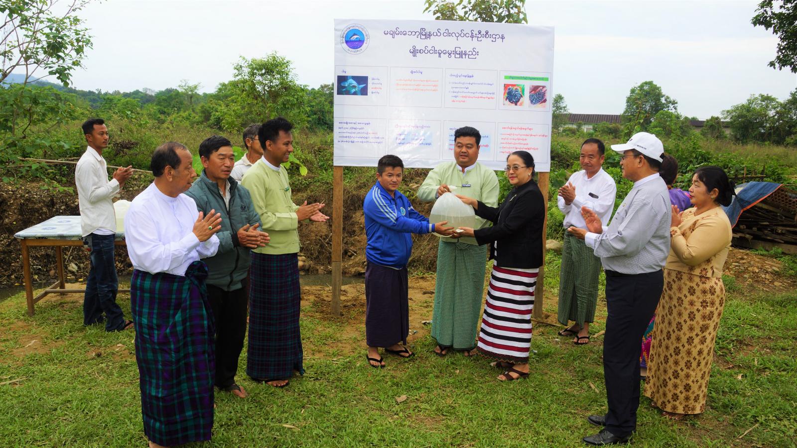 ထို့အပြင် မချမ်းဘောမြို့နယ် နမ်ခမ်ကျေးရွာနေ ပိုင်ရှင်ဦးအဂျွန်ဖုန်ဗေး၏ခြံ၌ နိုင်ငံ့စီးပွားမြှင့်တင်ရေး ရန်ပုံငွေ ကျပ်သုံးသိန်းဖြင့် ဒေသကြက်ကောင်ရေ (၇၀)နှင့် ဒေသဝက်နှစ်ကောင် မွေးမြူထားရှိမှု အခြေအနေများ၊ ပိုင်ရှင် ဦးဖုန်ယားဖုန်ရမ်၏ ငါးမွေးမြူရေးကန်၌ နိုင်ငံ့စီးပွားမြှင့်တင်ရေးရန်ပုံငွေဖြင့် တီလားဗီယားကောင်ရေ(၂၀၀၀) မွေးမြူထား ရှိမှုအခြေအနေများကို ကြည့်ရှုစစ်ဆေးပြီး အဆိုပါ ကျေးရွာအတွင်း ငါးမွေးမြူရေးလုပ်ငန်းဆောင်ရွက်နေသည့် တောင်သူများအား ရွှေဝါငါးကြင်းငါးမျိုးများ ထောက်ပံ့ပေးကာ ပိုင်ရှင် ဦးဖုန်ယားဖုန်ရမ်၏ ငါးမွေးမြူရေးကန်သို့ ရွှေဝါငါးကြင်း ငါးမျိုးများ ထပ်မံ စိုက်ထည့်ပေးခြင်းနှင့် မျိုးစပ်ငါးခူ နည်းစနစ်ကျမွေးမြူနည်းများကို မွေးမြူရေးတောင်သူများအကြား ကျယ်ကျယ်ပြန့်ပြန့် သိရှိနိုင်ရေး အသိပညာပေးလုပ်ငန်းများ ဆောင်ရွက်သွားရေး မြို့နယ်ငါးလုပ်ငန်း ဦးစီးဌာနနှင့် ညှိနှိုင်းပေါင်းစပ်ပေးခဲ့ကြောင်း သိရသည်။