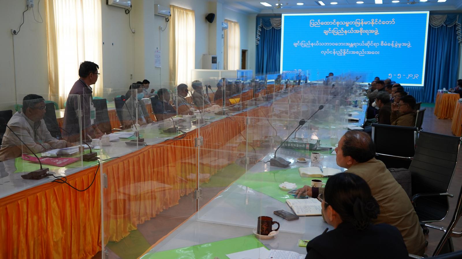 ယင်းနောက် ပြည်နယ်လုံခြုံရေးနှင့် နယ်စပ်ရေးရာဝန်ကြီး ဗိုလ်မှူးကြီး ဟန်ဝင်းအောင်၊ ပြည်နယ်အစိုးရအဖွဲ့အတွင်းရေးမှူး၊ စီးပွားရေးရာဝန်ကြီး၊ သယံဇာတရေးရာဝန်ကြီး၊ ပြည်နယ် ဥပဒေချုပ်နှင့် ချင်းပြည်နယ်သဘာဝဘေးအန္တရာယ်ဆိုင်ရာ စီမံခန့်ခွဲမှုအဖွဲ့အသီးသီးမှ ဥက္ကဌနှင့် အတွင်းရေးမှူးများက သဘာဝဘေးအန္တရာယ်ဆိုင်ရာ ကြိုတင်ပြင်ဆင်ဆောင်ရွက် ထားရှိမှုနှင့် ဆက်လက်ဆောင်ရွက်မည့်အစီအမံများကို ဆွေးနွေးကြသည်။