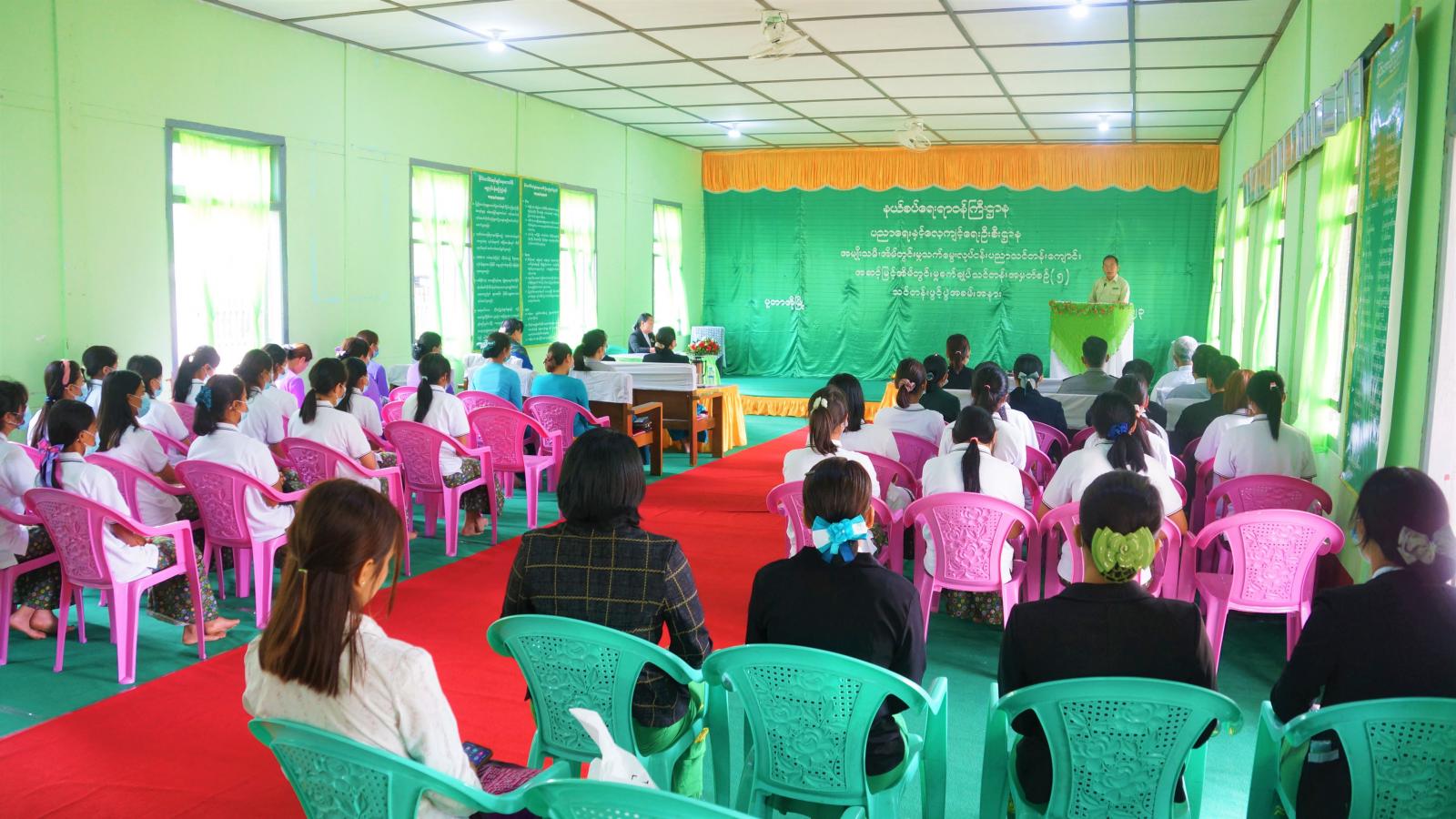 နယ်စပ်ရေးရာဝန်ကြီးဌာန၊ ပညာရေးနှင့် လေ့ကျင့်ရေးဦးစီးဌာန၊ အမျိုးသမီးအိမ်တွင်းမှု သက်မွေးလုပ်ငန်းပညာ သင်တန်း ကျောင်း (ပူတာအိုမြို့)၏ အဆင့်မြင့် အိမ်တွင်းမှုစက်ချုပ်သင်တန်းအမှတ်စဉ် (၅)သင်တန်း ဖွင့်ပွဲအခမ်းအနားကို ယနေ့ နံနက်(၉) နာရီက အဆိုပါအိမ်တွင်းမှုသင်တန်းကျောင်းခန်းမ၌ ကျင်းပပြုလုပ်သည်။