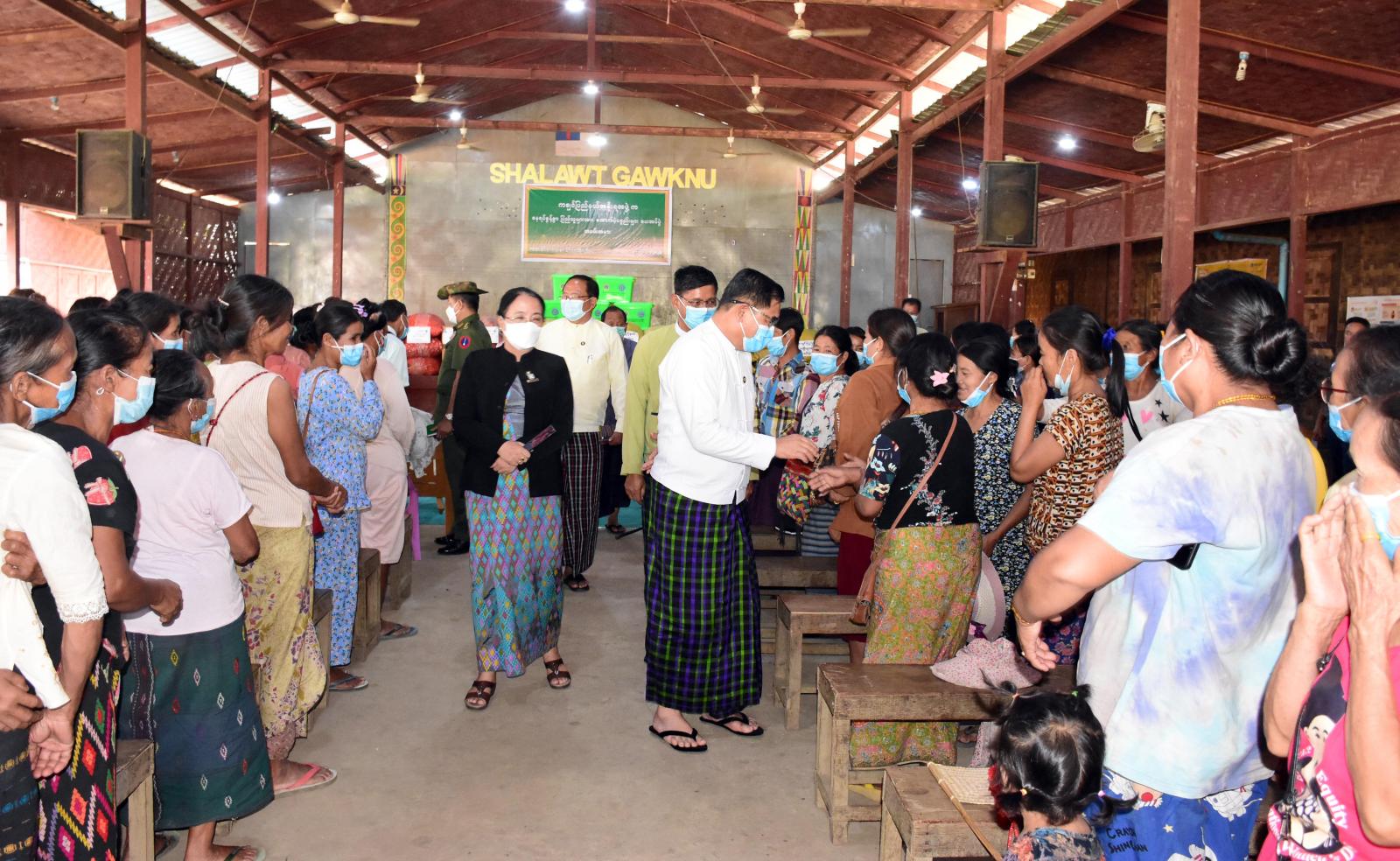 ထိုသို့ တွေ့ဆုံရာတွင် ပြည်နယ်ဝန်ကြီးချုပ်က ယာယီခိုလှုံရာစခန်းများတွင် ၁၀ နှစ်ကျော်ကြာ ကြံ့ကြံ့ခိုင်နေထိုင်လာခဲ့ကြသည့်အတွက် လူသားချင်းစာနာထောက်ထားမှု အကူအညီများ ပံ့ပိုးပေးနိုင်ရေး အတတ်နိုင်ဆုံး ဆောင်ရွက်ပေးခဲ့ပါကြောင်း၊ ဒါ့အပြင် နေရပ်စွန့်ခွာစခန်းများမှ အိမ်ထောင်စုများအား နေရပ်ကျေးရွာများတွင် ပြန်လည်အခြေချနေထိုင်ရာတွင်လည်း နေထိုင် စားသောက်ရေး၊ ရေ၊ မီး လိုအပ်ချက်များကို အတတ်နိုင်ဆုံး ဖြည့်ဆည်းဆောင်ရွက်ပေးလျက် ရှိပါကြောင်း၊ ယနေ့ မိမိတို့အနေဖြင့် အခြေခံစားသောက်ကုန်များ ထောက်ပံ့ပေးအပ် သွားမည့်အပြင် မိသားစုများ၏ လိုအပ်ချက်များကိုလည်း ဖြည့်ဆည်းဆောင်ရွက်ပေးနိုင်ရေး ပွင့်လင်းရင်းနှီးစွာ ဆွေးနွေးတင်ပြပေးကြစေလိုကြောင်း အားပေးမှာကြားသည်။