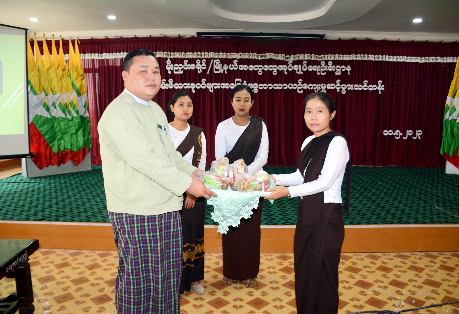 ထို့နောက် ဗုဒ္ဓဘာသာယဉ်ကျေးမှု ဆင့်ပွားသင်တန်းသို့ တက်ရောက်လာကြသည့် သင်တန်းသား၊ သင်တန်းသူ စုစုပေါင်း (၂၁)ဦး အား ခရိုင်အုပ်ချုပ်ရေးမှူးက သင်ထောက်ကူပစ္စည်းများ ထောက်ပံ့ပေးအပ်ပြီး မြို့နယ်အုပ်ချုပ်ရေးမှူးက အဟာရဒါနအနေဖြင့် ဖျော်ရည်နှင့်မုန့်များကို ပေးအပ်ပြီးနောက် ဗုဒ္ဓသာသနံစိရံတိဋ္ဌတု သုံးကြိမ်ရွတ်ဆို၍ အခမ်းအနားကို ရုတ်သိမ်းခဲ့ကြကာ ထိုသင်တန်းကို မေလ (၁၀)ရက်မှ (၁၁)ရက်ထိ နှစ်ရက်ကြာ သင်ကြားပို့ချပေးသွားမည်ဖြစ်ကြောင်း သိရသည်။