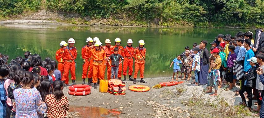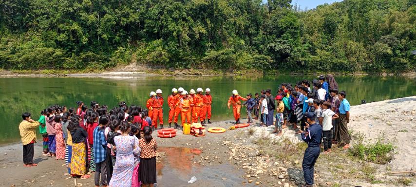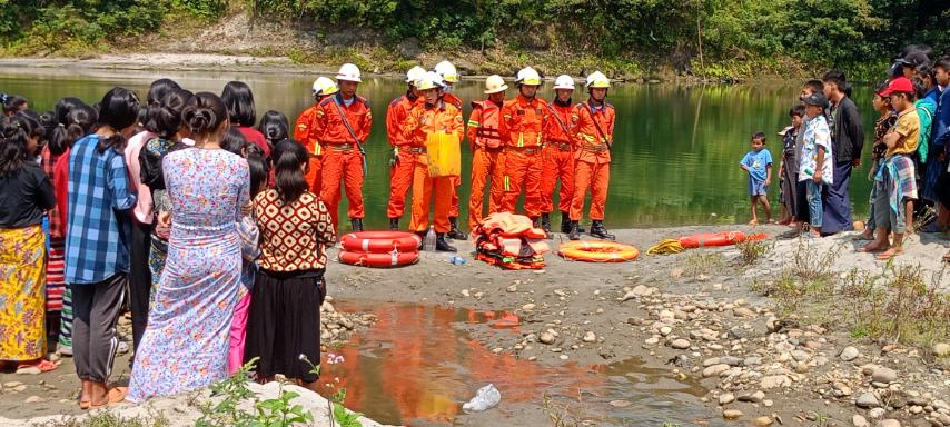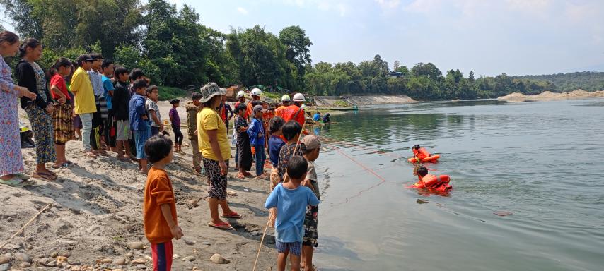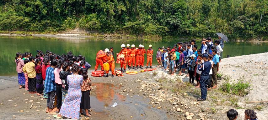 ကချင်ပြည်နယ်၊ ပူတာအိုခရိုင်၊ မချမ်းဘောမြို့တွင် ရေးဘေးအန္တရာယ်ကာကွယ်ရေးအတွက် ရေးဘေးအန္တရာယ်ကာကွယ်ရေးအသိပညာပေးသရုပ်ပြခြင်းကို ယမန်နေ့နံနက် ၁၀ နာရီက မလိခမြစ်ကမ်းဘေး၌ ဆောင်ရွက်ခဲ့သည်။