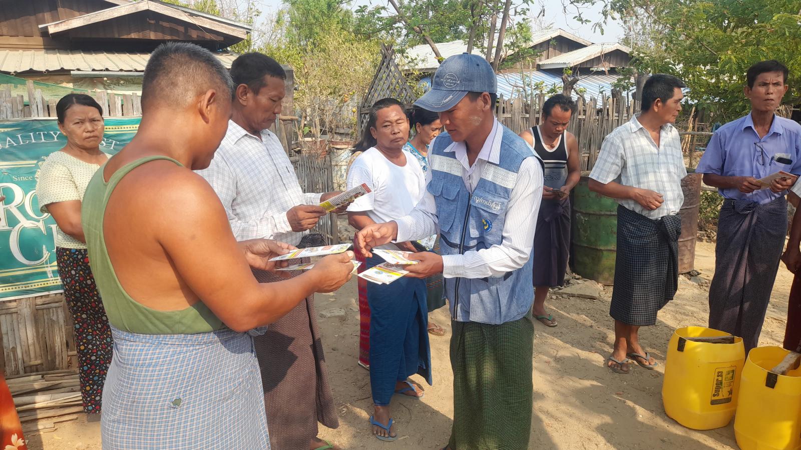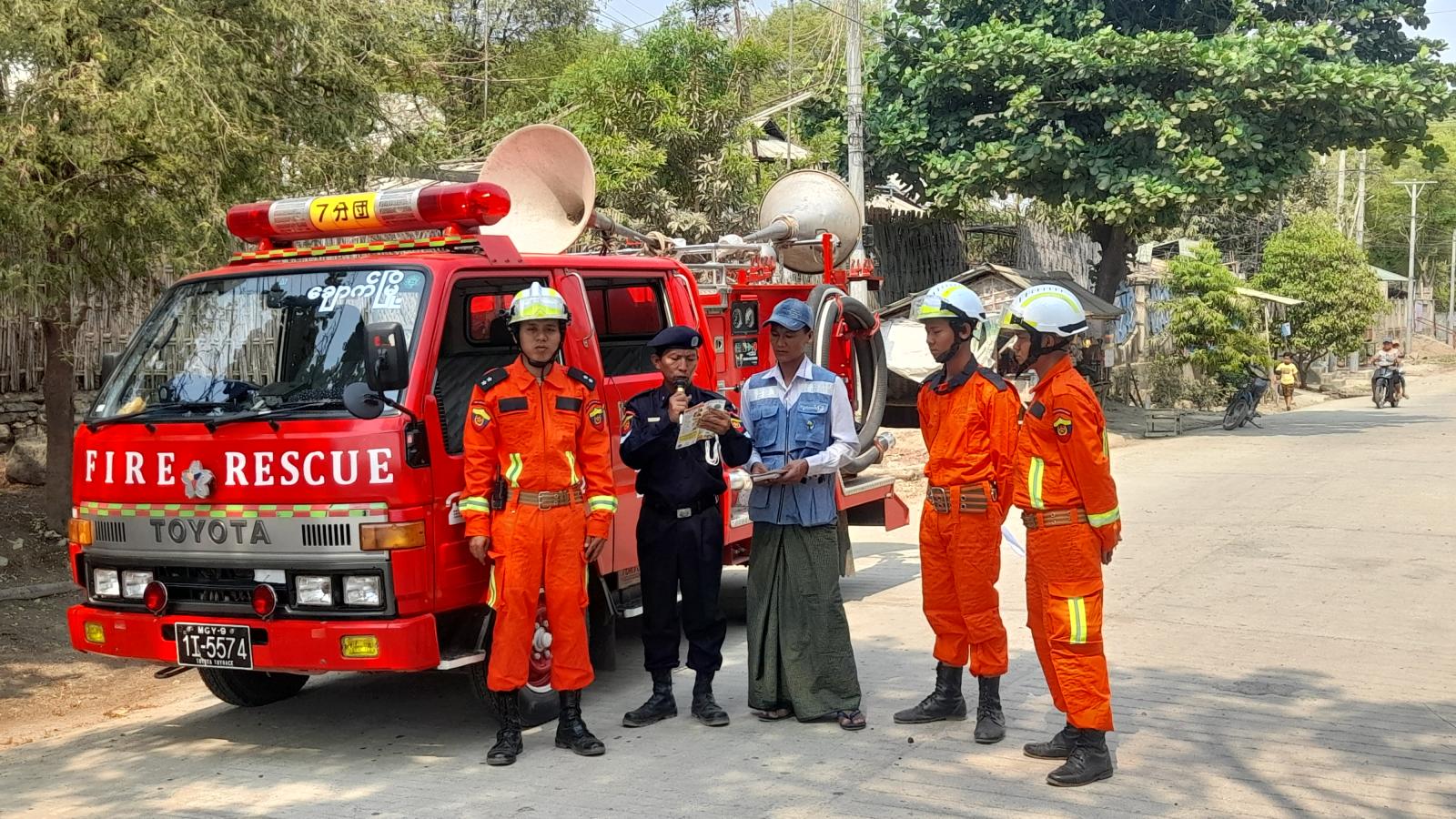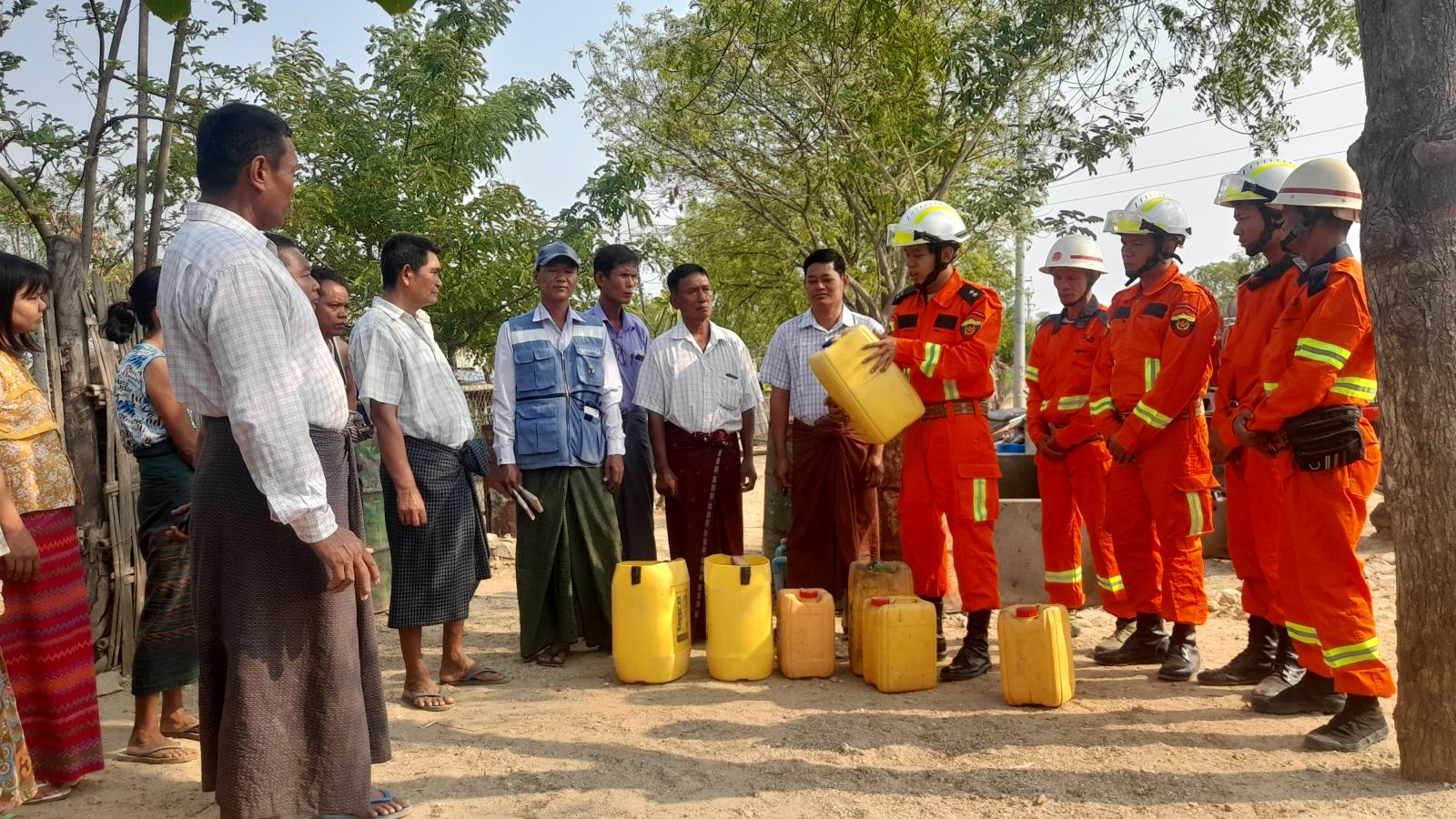 ထို့နောက် မြို့နယ်မီးသတ်ဦးစီးဌာနမှ ဒုတိယဦးစီးမှူး ဦးဇင်မျိုးသန့်မှ အမှတ်(၁၀)ရပ်ကွက်နှင့် အမှတ်(၁၅)ရပ်ကွက်ရှိ ပြည်သူများအား သဘာဝဘေးအန္တရာယ် ကြောင့်ရေကြီးရေလျှံမှု ဖြစ်ပေါ်ချိန်တွင် ၅ ဂါလန်ဆံ ပလတ်စတစ်ပုံးဖြင့် မိသားစုဝင်များအတွက် သောက်ရေသန့်များ ကြိုတင်ဖြည့်တင်း စုဆောင်းထားနိုင်သကဲ့သို့ ရေကြီးရေလျှံမှု ဘေးအန္တရာယ်ကျရောက်ပါကလည်း လူတစ်ဦး၏အသက်ကို ကောင်းစွာကယ်တင်နိုင်သဖြင့် ရပ်ရွာများရှိ နေအိမ်တိုင်းတွင် ၅ ဂါလန်ဆံ ပလတ်စတစ် ပုံးများအသင့် ကြိုတင်ပြင်ဆင်ထားရှိရေးနှင့် အသက်ကယ်တင် အသုံးပြုနည်းများကို သရုပ်ပြဟောပြောခဲ့ကြောင်း သိရသည်။