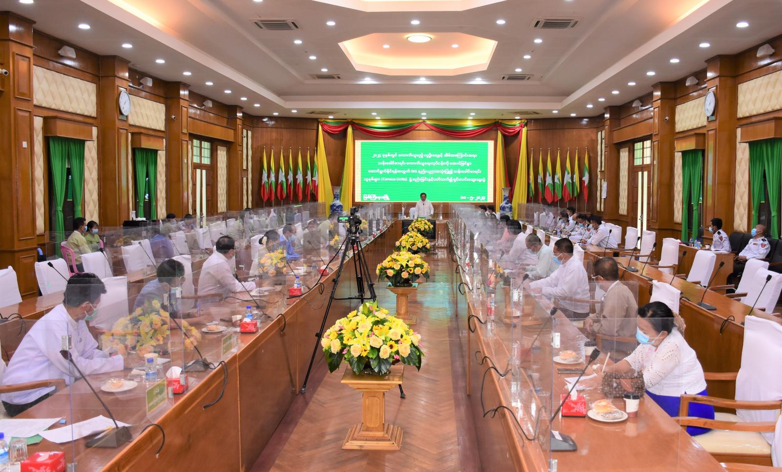 ၂၀၂၄ ခုနှစ် ကောက်ယူမည့် လူဦးရေနှင့် အိမ်အကြောင်းအရာ သန်းခေါင်စာရင်းကောက်ယူမည့် လုပ်ငန်းများ အောင်မြင်စွာ ဆောင်ရွက်နိုင်ရေးအတွက် GIS နည်းပညာ အသုံးပြု၍ သန်းခေါင်စာ ရင်းယူနစ်များ (Census Units) ဖွဲ့စည်းခြင်း ရှင်းလင်း ဆွေးနွေးပွဲ အခမ်းအနားကို ယမန်နေ့ မွန်းလွဲ ၁ နာရီက ပြည်နယ်အစိုးရအဖွဲ့ရုံး မလိခခန်းမ၌ ကျင်းပပြုလုပ်သည်။
