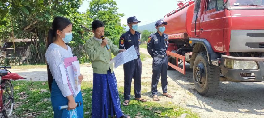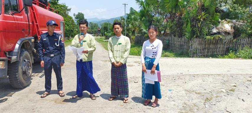 ထိုသို့လှည့်လည်အသိပေးနှိုးဆော်ရာတွင် မြို့နယ်အထွေထွေအုပ်ချုပ်ရေးဦးစီးဌာန ဝန်ထမ်းများ၊ မြို့နယ်မီးသတ်တပ်ဖွဲ့ ဝင်များ၊ မြို့နယ်ပြန်ကြားရေးနှင့်ပြည်သူ့ဆက်ဆံရေးဦးစီးဌာန ဝန်ထမ်းများနှင့် ရပ်ကွက်အုပ်ချုပ်ရေးမှူးတို့ ပူးပေါင်း ပါဝင်ပြီး လက်ကမ်းစာစောင်များ ဖြန့်ဝေခြင်း၊ အသံချဲ့စက်၊ လော်စပီကာများဖြင့် လိုက်လံသတိပေး နှိုးဆော်ခြင်းများ ဆောင်ရွက်ခဲ့ကြောင်း သတင်းရရှိသည်။