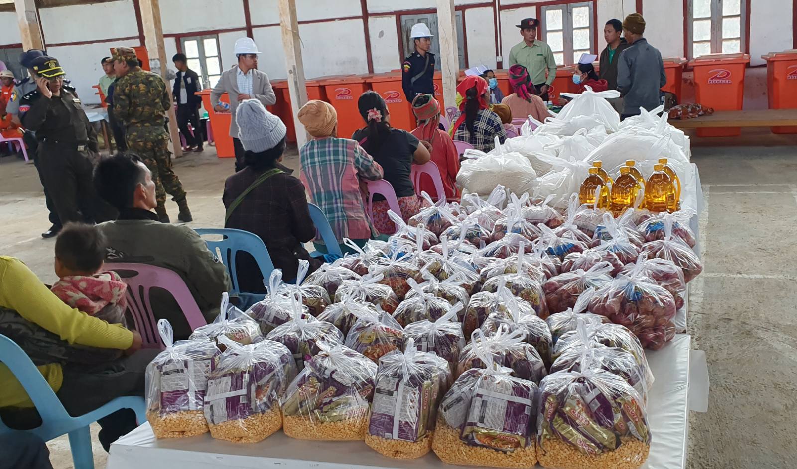 ချင်းပြည်နယ်၊ တီးတိန်ခရိုင်၊ တီးတိန်မြို့၌ ခရိုင်သဘာဝဘေးအန္တရာယ်ဆိုင်ရာ စီမံခန့်ခွဲမှုကော်မတီဥက္ကဋ္ဌ ဦးအောင်ချမ်းငြိမ်းဦးဆောင်မှုဖြင့် ခရိုင်ကော်မတီဝင်များ၊ မြို့နယ်သဘာဝဘေးအန္တရာယ်ဆိုင်ရာ စီမံခန့်ခွဲမှုကော်မတီဥက္ကဋ္ဌ ဦးဖြိုးဝင်းသန်းနှင့်ကော်မတီဝင်များ၊ မြို့မိ၊ မြို့ဖများသည် မေ ၁၅ ရက်နေ့က သဘာဝဘေး ယာယီတိမ်းရှောင်စခန်း ခွာဒိုခန်းမရှိ ပြည်သူများထံသို့ သွားရေက်ခဲ့ကြသည်။
