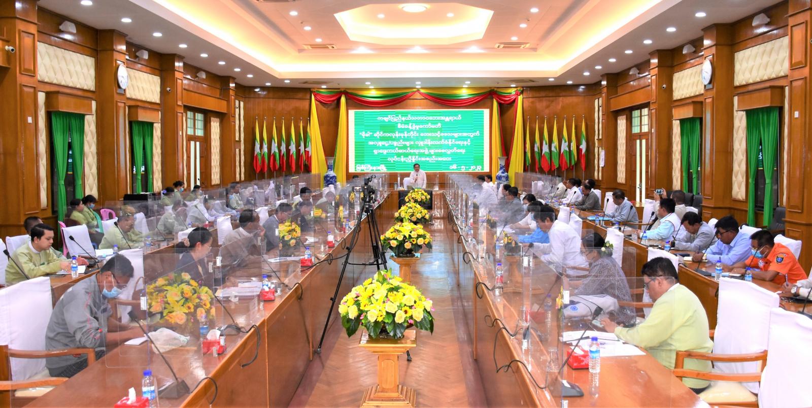မြန်မာနိုင်ငံအတွင်း အလွန့်အလွန်အားကောင်းသော “မိုခါ” ဆိုင်ကလုန်းမုန်တိုင်း ဖြတ်သန်းဝင်ရောက်မှုကြောင့် သဘာဝဘေးသင့်ဒေသများအား ကချင်ပြည်နယ်အစိုးရအဖွဲ့မှ အလှူငွေနှင့်ပစ္စည်းများ ပေးပို့လှူဒါန်းနိုင်ရေး၊ ရှာဖွေကယ်ဆယ်ရေးအဖွဲ့များ စုဖွဲ့စေလွှတ်နိုင်ရေးအတွက် ပြည်နယ်/ ခရိုင်/ မြို့နယ် သဘာဝဘေးအန္တရာယ် စီမံခန့်ခွဲမှုကော်မတီအဖွဲ့ဝင်များ၏ လုပ်ငန်းညှိနှိုင်း အစည်းအဝေးကို မေ ၁၆ ရက် ညနေ ၃ နာရီခွဲက ပြည်နယ်အစိုးရအဖွဲ့ရုံး မလိခခန်းမ၌ ကျင်းပ ပြုလုပ်သည်။