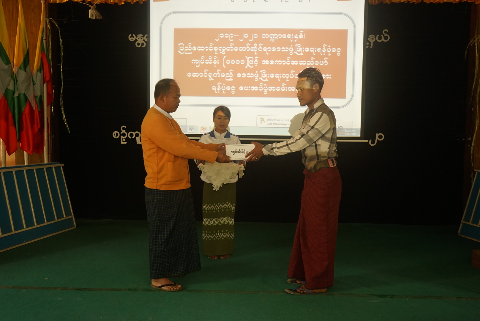 ဆက်လက်၍ တိုင်းဒေသကြီးလွှတ်တော်ကိုယ်စားလှယ် ဒေါက်တာကျော်နိုင်ဦး၊ ခေတ္တမြို့နယ် အုပ်ချုပ်ရေးမှူး ဦးဇော်နီလင်းနှင့် တာဝန်ရှိသူတို့က ကျေးရွာဖွံ့ဖြိုးရေးလုပ်ငန်းများ ဆောင်ရွက်မည့် သာယာကုန်း၊ လက်ဆည်ဦး၊ ညောင်ပင်သာ၊ ရွှေလှေ၊ ချောင်းဝ၊ ခက်သင်၊ ကျောက်တိုင်၊ ဆည်ကြီး၊ တံတားဦး၊ ရေချမ်း၊ ထီးကုန်း၊ ဇီးကုန်း၊ ဆင်ကျွန်း၊ ဟင်္သာမရွာသစ်၊ ရွှေဂုံတိုင်(၁)၊ ငါးအိမ်ထောင်၊ ငှက်စား၊ ပင်လယ်ကြီး၊ ပျဉ်းပင်၊ ဒိုးနွယ်၊ မြကန်သာ၊ ထုံးကြီးကျေးရွာတို့မှ ကျေးရွာဖွံ့ဖြိုးရေးလုပ်ငန်းများ အကောင်အထည်ဖော်ရေးအဖွဲ့ဥက္ကဋ္ဌ တို့ထံသို့ ခွင့်ပြုရန်ပုံငွေများ ပေးအပ်ကြသည်။
