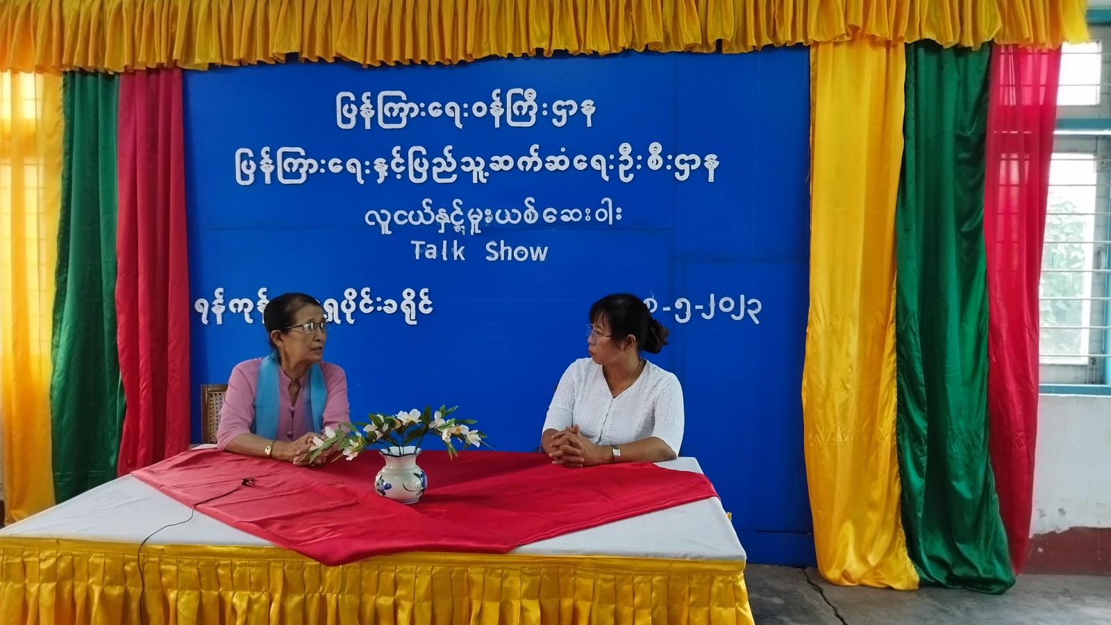 ဆွေးနွေးပွဲ(Talk Show)တွင် ပြန်ကြားရေးနှင့်ပြည်သူ့ဆက်ဆံရေးဦးစီးဌာန၊ လက်ထောက် ညွှန်ကြားရေးမှူး ဒေါ်လှလှနွယ်နှင့် စာအုပ်စာပေချစ်မြတ်နိုးသူများ Book Club အဖွဲဝင်စာရေးဆရာမ မြမဉ္ဇူဝေ(ကျုံမငေး)တို့မှ ယနေ့လူငယ်လူရွယ်များ၏စိတ်ဓာတ်နှင့်အကျင့်စာရိတ္တမဏ္ဏိုင်ကို အကြီးမားဆုံးလှိုက်စားဖျက်ဆီးနိုင်သည့် မူးယစ်ဆေးဝါးအန္တရာယ်အား အသိပညာဗဟုသုတရရှိစေရန်၊ မူးယစ်ဆေးဝါးနှင့်ပတ်သက်ပြီး ရှောင်ရှားနိုင်ရန်၊ မူးယစ်အန္တရာယ် မကျရောက်စေရန်အတွက် အသိပညာပေးဆွေးနွေးခဲ့ကြောင်း သိရသည်။