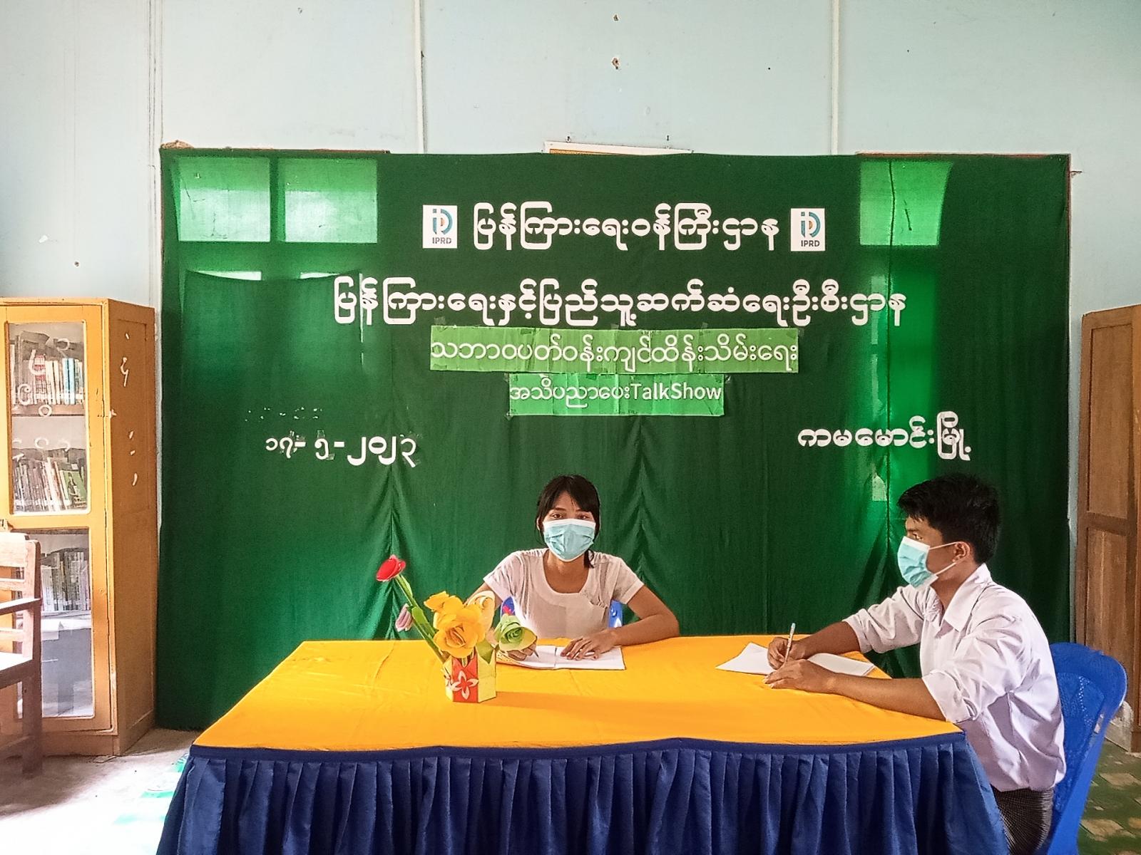 ကရင်ပြည်နယ်၊ ဖာပွန်ခရိုင်၊ ကမမောင်းမြို့တွင် သဘာဝပတ်ဝန်းကျင်ထိန်းသိမ်းရေး အသိပညာပေး Talk Show ဆွေးနွေးပွဲကို ယနေ့နံနက်(၁၀) နာရီက ကမမောင်းမြို့ ပြန်ကြားရေးနှင့်ပြည်သူ့ဆက်ဆံရေးဦးစီးဌာန Community Centre ခန်းမ၌ ကျင်းပပြုလုပ်ခဲ့ကြကြောင်း သိရှိရသည်။