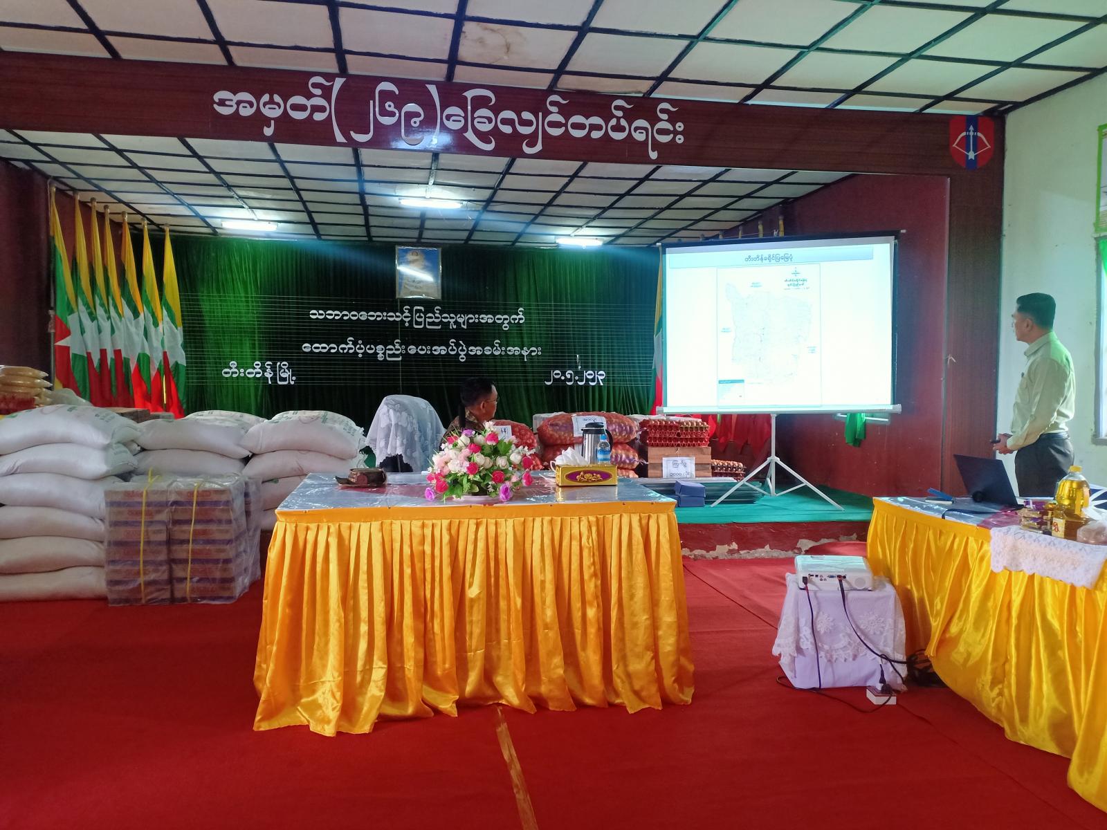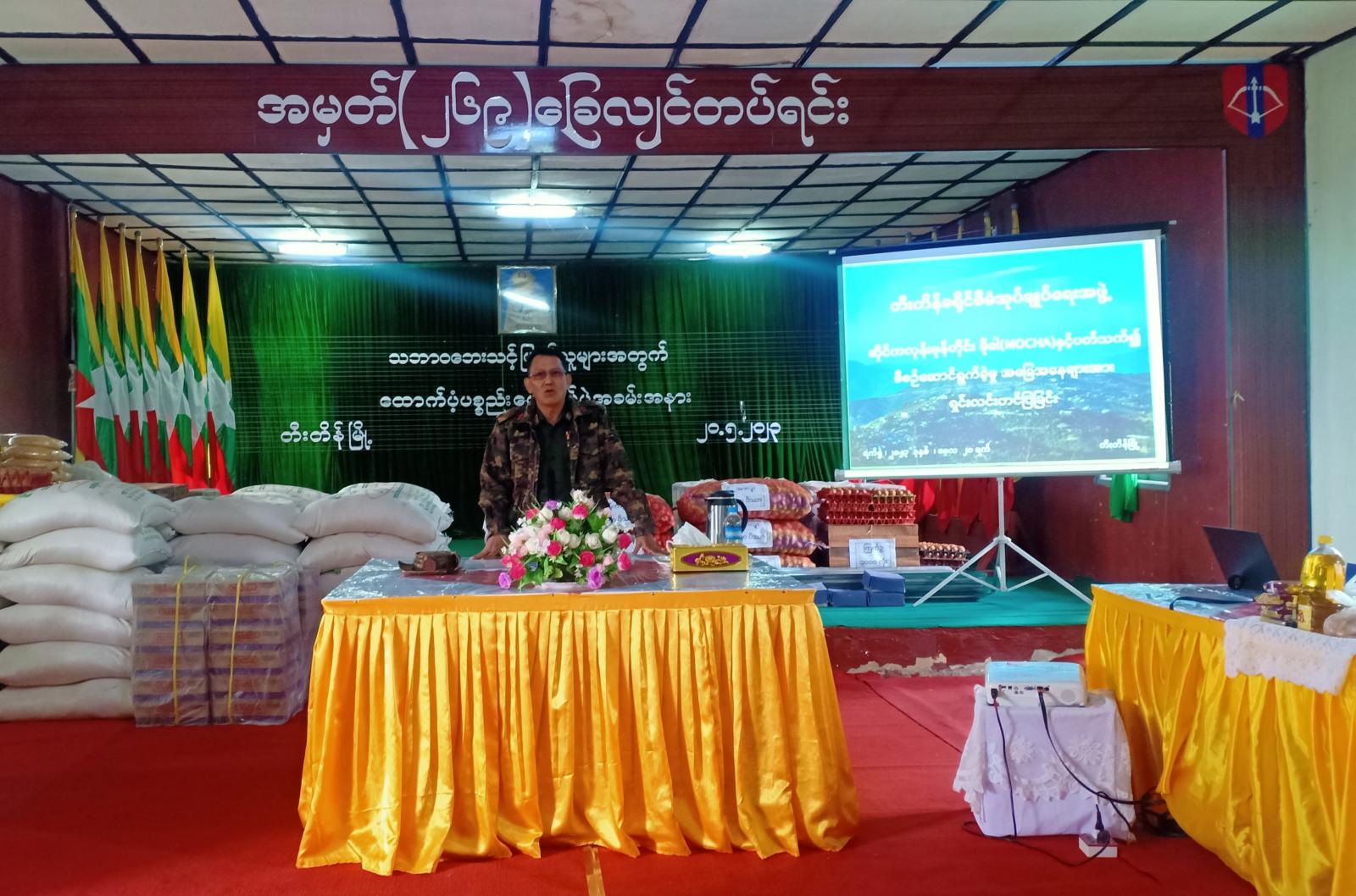 ဆက်လက်၍ မုန်တိုင်းဒဏ်သင့် ပြည်သူများအား ဗိုလ်မှူးချုပ်ဝင်းကိုကိုက ထောက်ပံ့ပစ္စည်းများ လက်ဝေပေးအပ်ပြီး သဘာဝဘေးသင့်ပြည်သူများကိုယ်စား ပြည်သူတစ်ဦးက ကျေးဇူးတင်စကားပြန်လည်ပြောကြားသည်။ အဆိုပါ သဘာဝ ဘေးသင့်ပြည်သူများ ထောက်ပံ့ပေးအပ်ပွဲ အခမ်းအနားသို့ ခရိုင်/မြို့နယ်စီမံအုပ်ချုပ်ရေးအဖွဲ့ဝင်များ၊ ဌာနဆိုင်ရာများ၊ လူမှုရေးအသင်းအဖွဲ့များ၊ သဘာဝဘေးသင့်ပြည်သူများ တက်ရောက်ခဲ့ကြသည်။