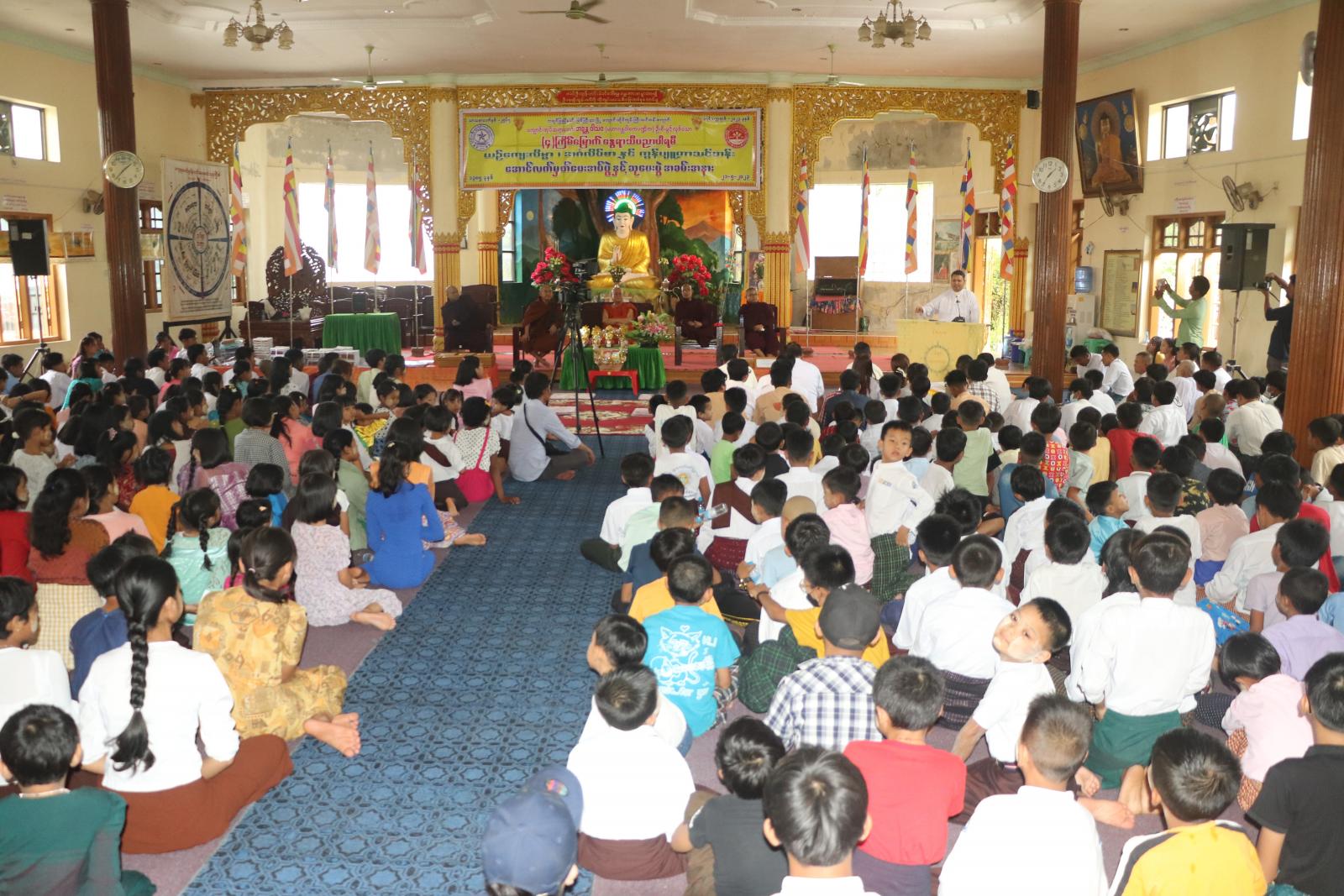 ယင်းနောက် ဆရာတော်/ သံဃာတော်များက ယဉ်ကျေးလိမ္မာသင်တန်းနှင့် အင်္ဂလိပ်စာ သင်တန်း များမှ အတန်းလိုက် အထူးအောင်ပုဂ္ဂိုလ်များအား ဆုတံဆိပ်နှင့် အောင်လက်မှတ်များကို လည်းကောင်း အသီးသီးပေးအပ်ချီးမြှင့်ခဲ့ကြရာ ကျောင်းသား မိဘတစ်ဦးက ကျေးဇူးတင်စကား ပြောကြားပြီး အခမ်းအနားကို ဗုဒ္ဓသာသနံစိရံတိဌတု (၃)ကြိမ်ရွတ်ဆို ရုပ်သိမ်းလိုက်ကြကြောင်း သိရသည်။