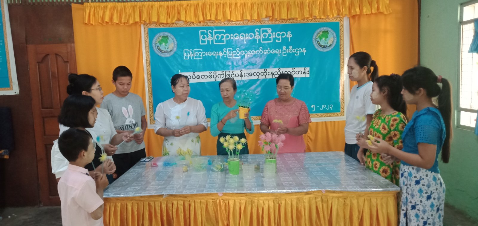 အဆိုပါသင်တန်းတွင် Youth Club အဖွဲ့ဝင်များ၊ Woman Club အဖွဲ့ဝင်များနှင့် ကျောင်းသူများတက်ရောက်ခဲ့ကြပြီး အုပ်စုအလိုက်အဖွဲ့ခွဲ၍ ပန်းပွင့်ပုံထိုးနည်း၊ ပန်းအလှဆင်နည်း လက်တွေ့ပန်းအလှထိုးခြင်းများ ဆောင်ရွက်ခဲ့ကြရာ ပလတ်စတစ်ပိုက်ဖြင့် ပန်းအလှထိုးနည်း သင်တန်းတွင် သင်တန်းသူ (၁၀) ဦး တက်ရောက်ခဲ့ကြကြောင်း သိရသည်။