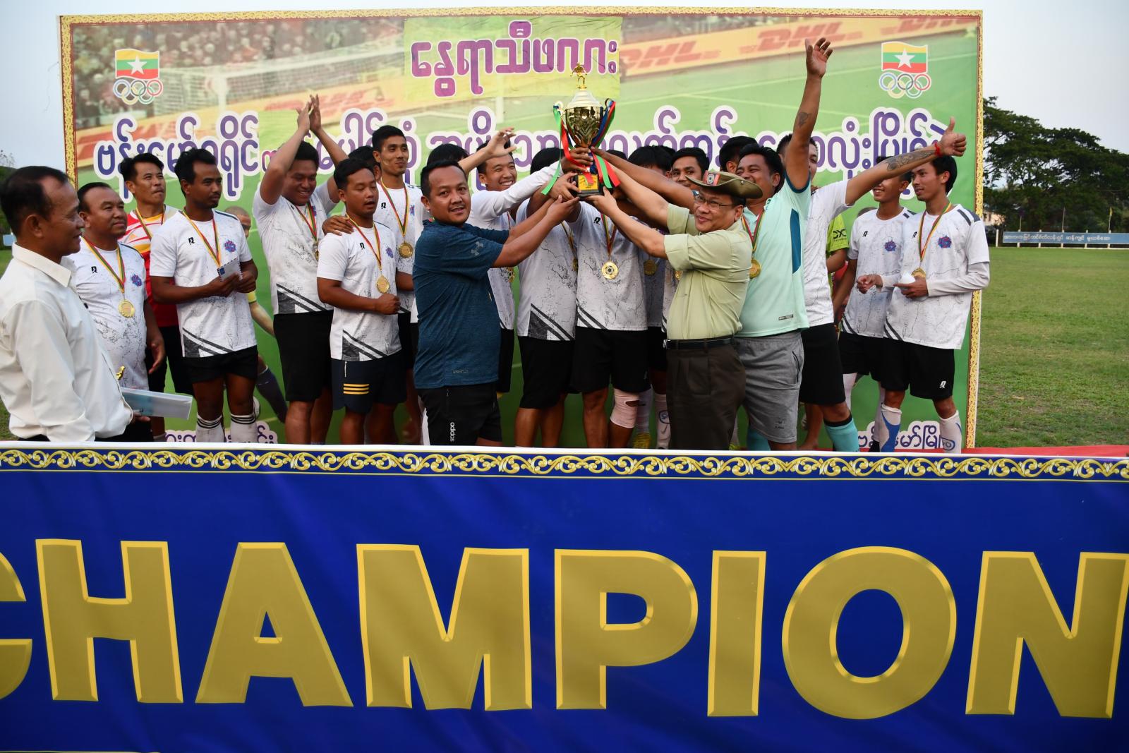 ဆက်လက်၍ ဆုချီးမြှင့်ခြင်းကို ကျင်းပရာ ပထမ၊ ဒုတိယရရှိသည့် အသင်းများအား ဆုဖလား၊ ဆုငွေနှင့် လည်ဆွဲပြားများကို တာဝန်ရှိသူများက အသီးသီးပေးအပ်ချီးမြှင့်ခဲ့ရာ ပထမဆု ရရှိသည့် K-SEVEN အသင်းအား ဆုဖလားနှင့် ဆုငွေ၊ လည်ဆွဲများကို ခရိုင်စီမံအုပ်ချုပ်ရေးအဖွဲ့ဥက္ကဋ္ဌ ဦးခင်မောင်လွင်က ပေးအပ်ချီးမြှင့်ခဲ့ကြောင်း သိရပါသည်။
