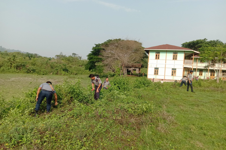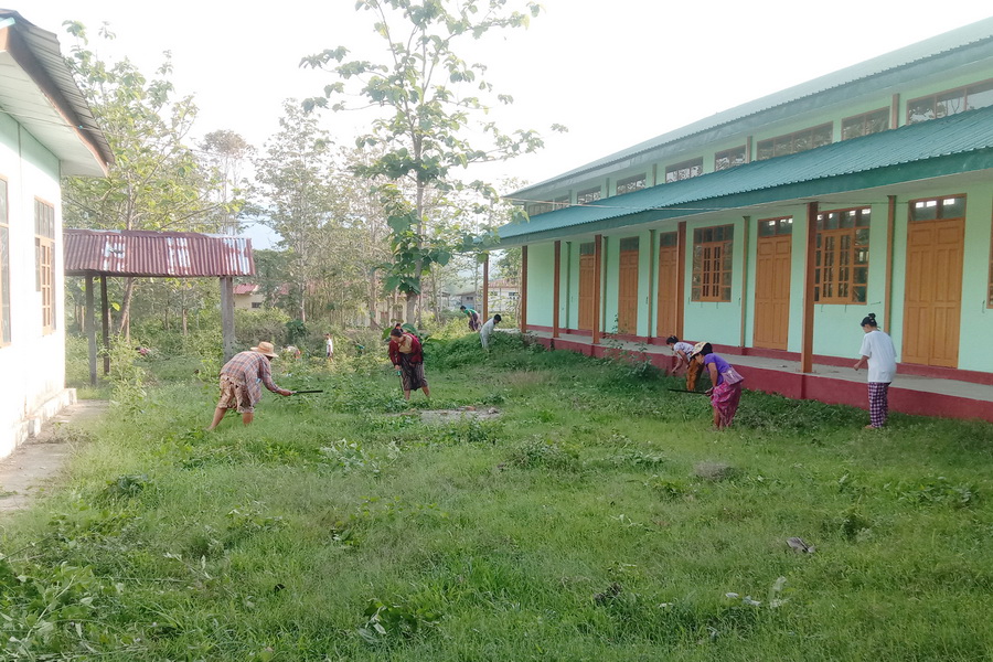 ထိုသို့ငှက်ဖျားရောဂါ၊ သွေးလွန်တုတ်ကွေးရောဂါမဖြစ်ပွားစေရေးနှင် သန့်ရှင်းသာယာလှပရေးအတွက် စုပေါင်းသန့်ရှင်းရေးပြုလုပ်ရာတွင် မြို့အထွေထွေအုပ်ချုပ်ရေးဦးစီးဌာနမှ မြို့အုပ်ချုပ်ရေးမှူး ဦးဌေးလင်းနှင့် ဌာနဆိုင်ရာဝန်ထမ်းများ၊ နယ်မြေရဲစခန်းမှ စခန်းမှူးရဲအုပ်ဇော်မျိုးထွန်းနှင့် တပ်ဖွဲ့ဝင်များ၊ မီသတ်တပ်ဖွဲ့ဝင်များ၊ ရပ်ကွက်အုပ်ချုပ်ရေးမှူးများနှင့် ရပ်ကွက်နေပြည်သူများပူးပေါင်း၍ ဒေါ့ဖုန်းယန်မြို့ အခြေခံပညာအထက်တန်းကျောင်းဝင်းအတွင်းရှိ ချုံနွယ်ပေါင်းမြက်များ ခုတ်ထွင်ရှင်းလင်းခြင်းနှင့် အမှိုက်များရှင်းလင်းခြင်းတို့ကို စုပေါင်းဆောင်ရွက်ပေးခဲ့ကြောင်း သိရှိရသည်။