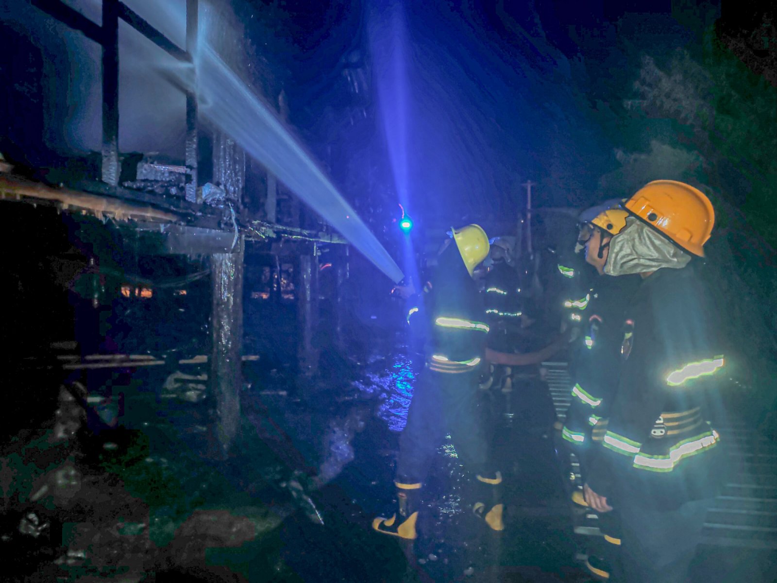 ထိုသို့ဖြစ်ပွားရာသို့ မြို့နယ်မီးသတ်ဦးစီးဌာနမှ မြို့နယ်ဦးစီးမှူး ဦးဇော်မော် ဦးဆောင်ပြီး တပ်ဖွဲ့ဝင်များဖြင့် မီးငြှိမ်းသတ်ယာဉ်တစ်စီး၊ ရေသယ်ယာဉ်တစ်စီးတို့ဖြင့် သွားရောက်ငြှိမ်းသတ်ခဲ့ရာ ၁ နာရီ မိနစ်၂၀ အချိန်တွင် မီးငြှိမ်းသတ်နိုင်ခဲ့ကြောင်း သိရသည်။