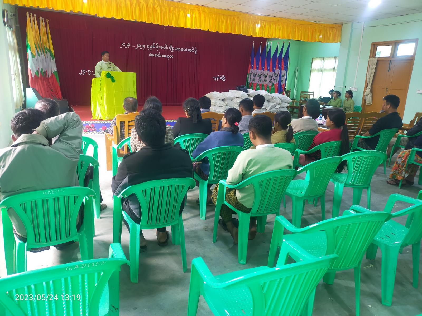 ချင်းပြည်နယ်၊ တွန်းဇံမြို့တွင် ၂၀၂၃-၂၀၂၄ ခုနှစ် မိုးစပါးမျိုးစေ့ပေးအပ်ပွဲအခမ်းအနားကို မေလ ၂၄ ရက်နေ့ မွန်းလွဲ (၁)နာရီအချိန်က ခေါဝုန်လေးဆန်ရပ်ကွက် မြို့နယ်အထွေထွေအုပ်ချုပ်ရေးဦးစီးဌာန၊ အစည်းအဝေးခန်းမ၌ ကျင်းပပြုလုပ်သည်။