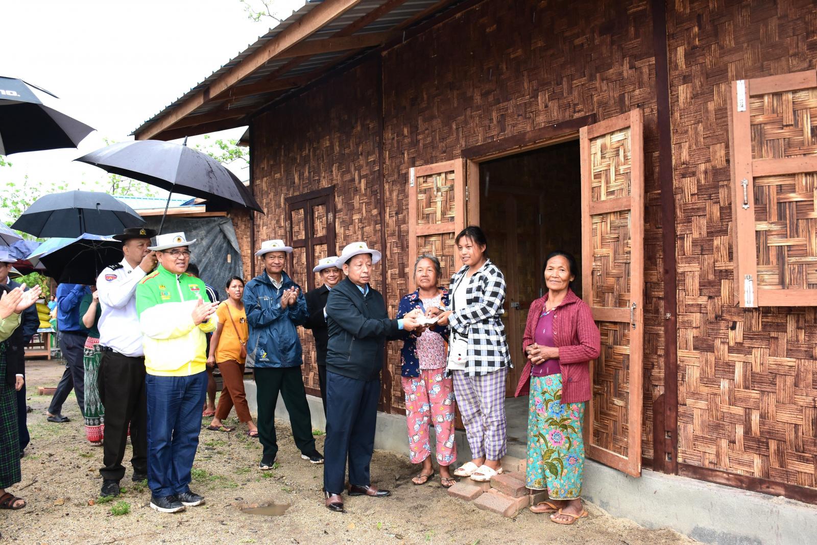 တစ်စီးကို အသီးသီးထောက်ပံ့ပေးအပ်ကာ ပြည်နယ်ဝန်ကြီးချုပ်က အိမ်ထောင်စုများအတွက် သက် မွေးပညာသင်တန်းများ ဖွင့်လှစ်ပေးနိုင်ရေးနှင့် စိုက်ပျိုးရေး မွေးမြူရေးလုပ်ငန်းများ လုပ်ကိုင်ဆောင် ရွက်နိုင်ရေး၊ လျှပ်စစ်မီးလင်းရေး၊ သောက်သုံးရေ စက်ရေတွင်းတူးဖော်ပေးနိုင်ရေး ညှိနှိုင်းပေါင်းစပ်၍ ဖြည့်ဆည်းဆောင်ရွက်ပေးခဲ့သည်။