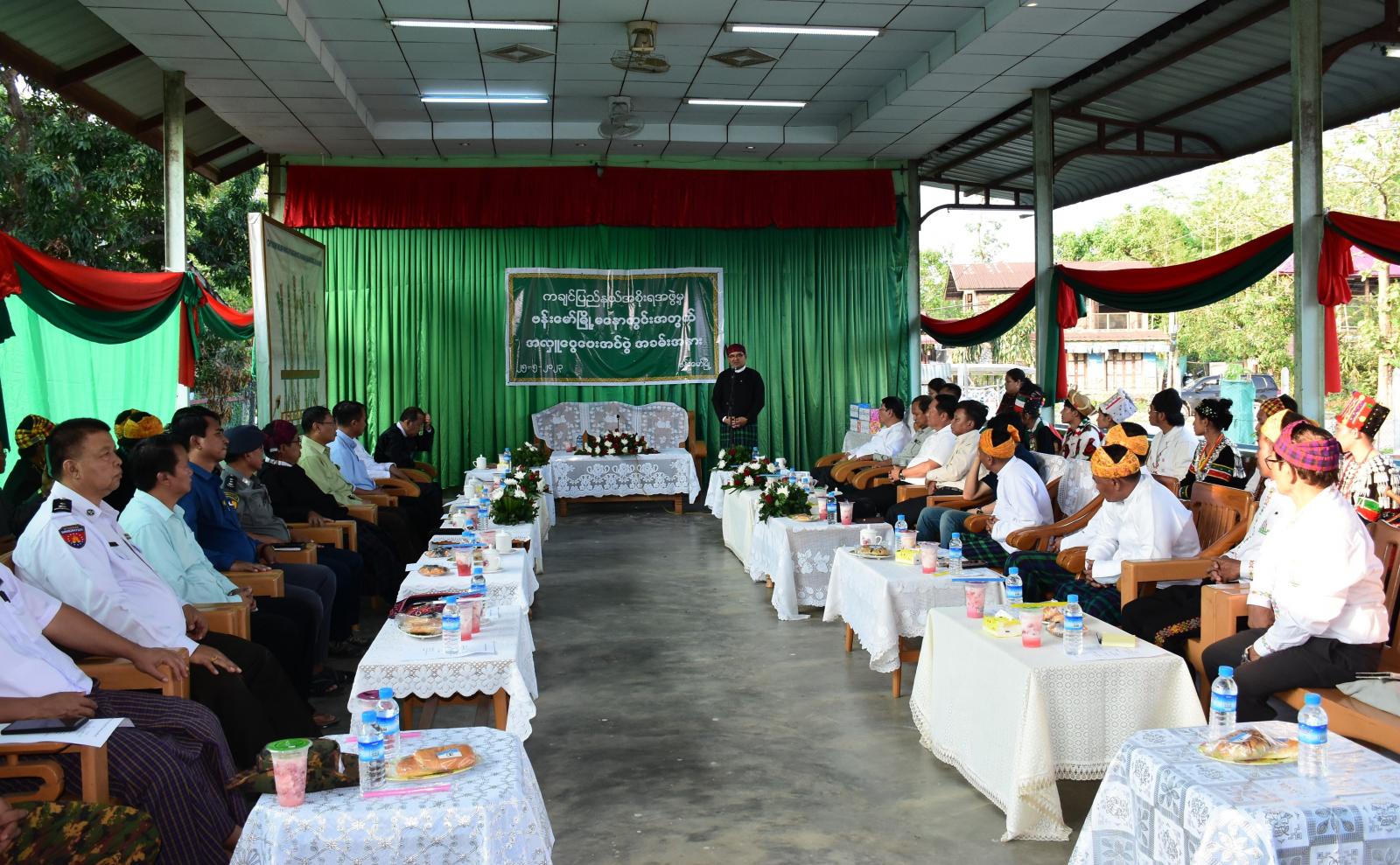 ယင်းနောက် အဆိုပါ ရပ်ကွက်အတွင်းရှိ ဗန်းမော်ခရိုင်ကချင်စာပေနှင့် ယဉ်ကျေးမှုကော်မတီ ဝင်းအတွင်း တည်ဆောက်လျက်ရှိသည့် ကချင်ရိုးရာမနောတိုင်၊ မနောကွင်းအတွက် အလှူငွေ ပေးအပ်လှူဒါန်းပွဲနှင့် အဝင်မုဒ်ဦးပန္နက်ရိုက်တင်ပွဲ အခမ်းအနားသို့တက်ရောက်ခဲ့ကြပြီး ရှေးဦးစွာ ကော်မတီရုံး၌ ဘာသာရေးခေါင်းဆောင်များ၊ ကော်မတီအဖွဲ့ဝင်များနှင့်တွေ့ဆုံပြီး ကော်မတီဥက္ကဋ္ဌ ဦးဖော်လုလဝမ်က ကြိုဆိုနှုတ်ခွန်းဆက်စကားပြောကြားပြီး ပြည်နယ်ဝန်ကြီးချုပ်က ယနေ့ ဗန်းမော် ခရိုင်တွင် ကချင်လူမျိုးတို့၏ ဂုဏ်ယူဖွယ်ရာ မနောကွင်းအတွင်း မနောတိုင်ဆောင်ရွက်ပြီးစီးတော့ မည်ဖြစ်ပါကြောင်း၊ရိုးရာယဉ်ကျေးမှုသည် လက်ဆင့်ကမ်းထိန်းသိမ်းရမည့်အမွေအနှစ်ဖြစ်ပါကြောင်း၊ မိမိတို့အနေဖြင့် မိမိတို့၏ ရိုးရာအမွေအနှစ်များကို ဘိုးဘွား၊မိဘများဆီက လက်ဆင့်ကမ်းထိန်းသိမ်း ခဲ့သလို မိမိတို့၏ သားသမီး၊ နောင်လာနောက်သား လူငယ်လူရွယ်များကိုလည်း အလေးအနက်ထား တန်ဖိုးထား ထိန်းသိမ်းတတ်စေရေး လေ့ကျင့်သင်ကြား ပေးရမည်ဖြစ်ကြောင်း တိုက်တွန်းပြောကြား သည်။