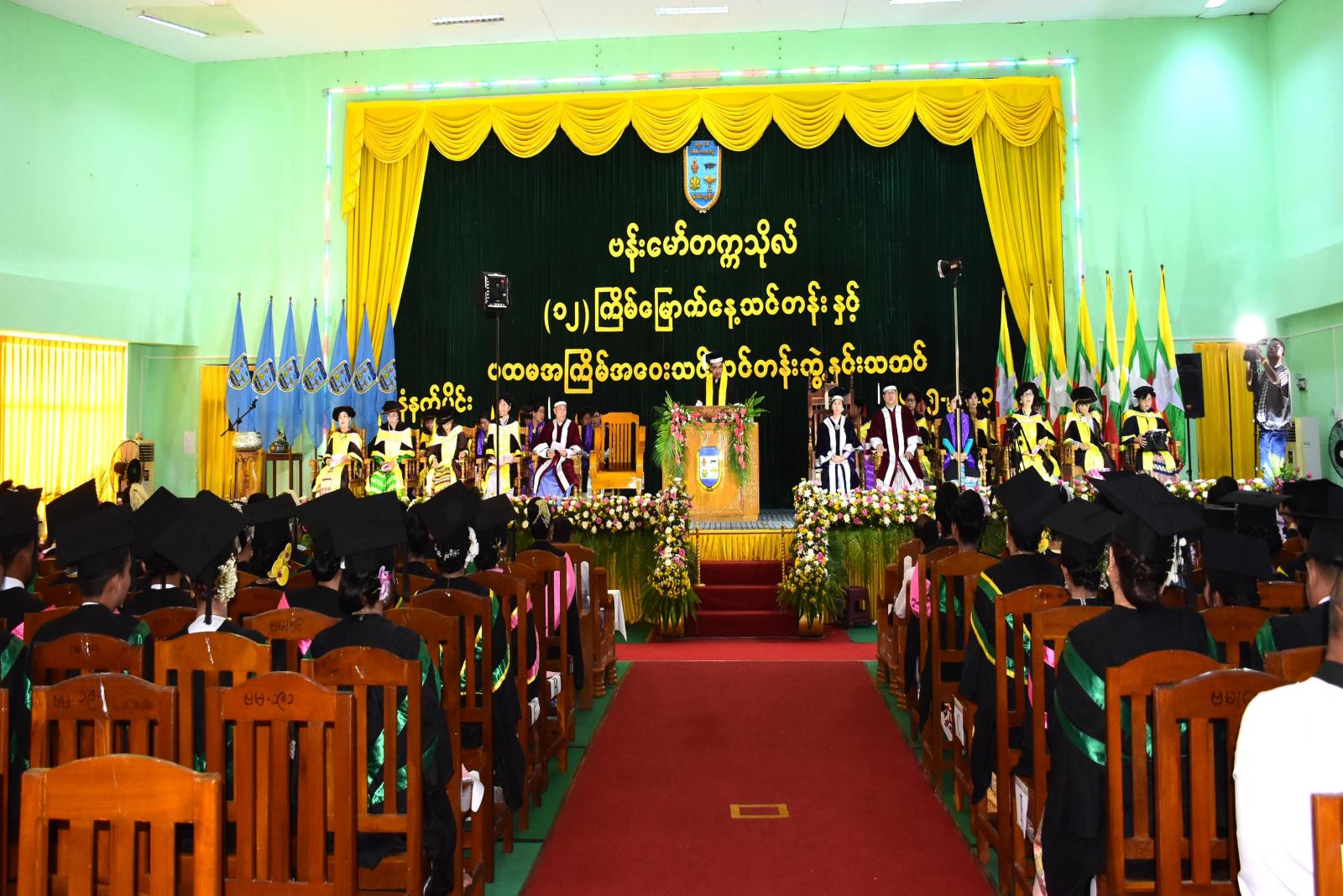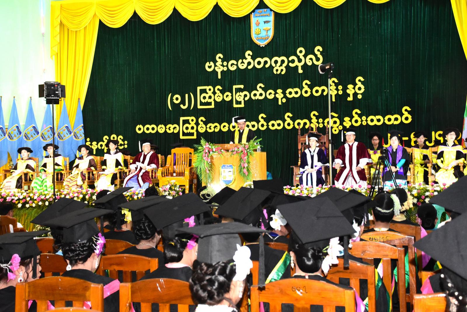 အဆိုပါ နေ့သင်တန်းဘွဲ့နှင်းသဘင်အခမ်းအနားကို ဗန်းမော်တက္ကသိုလ် ဘွဲ့နှင်းသဘင်ခန်းမ၌ ကျင်းပပြုလုပ်ရာ ပြည်နယ်ဝန်ကြီးချုပ် ဦးခက်ထိန်နန်သည် ပါမောက္ခချုပ်နှင့်တကွ စီမံခန့်ခွဲရေးအဖွဲ့များ၊ ပညာရေးအဖွဲ့ဝင် ပုဂ္ဂိုလ်များနှင့်အတူ ဘွဲ့အပ်နှင်းမည့် စင်မြင့်သို့ တက်ရောက်ခဲ့ကြပြီး ပါမောက္ခချုပ်ဒေါက်တာနေသွယ်ကြည်ထံ ပါမောက္ခ(ဌာနမှူး)များက ဘာသာရပ်အလိုက် မဟာဝိဇ္ဇာ ဘွဲ့၊ မဟာသိပ္ပံဘွဲ့၊ ဝိဇ္ဇာဂုဏ်ထူးဘွဲ့၊ သိပ္ပံဂုဏ်ထူးဘွဲ့၊ ဝိဇ္ဇာဘွဲ့နှင့် သိပ္ပံဘွဲ့များအတွက် ကောင်းစွာအောင်မြင်ပေါက်မြောက်ခဲ့သည်ဟု ပညာရေးအဖွဲ့မှ ကြေညာခဲ့သည့် ဘွဲ့ယူမည့် ကျောင်းသား/ ကျောင်းသူများအား ပို့ဆောင်ရာ ပါမောက္ခချုပ်က ဘွဲ့ရမောင်မယ်များအား တစ်ဦးချင်း ဘွဲ့လက်မှတ် များကို ချီးမြှင့်အပ်နှင်းသည်။