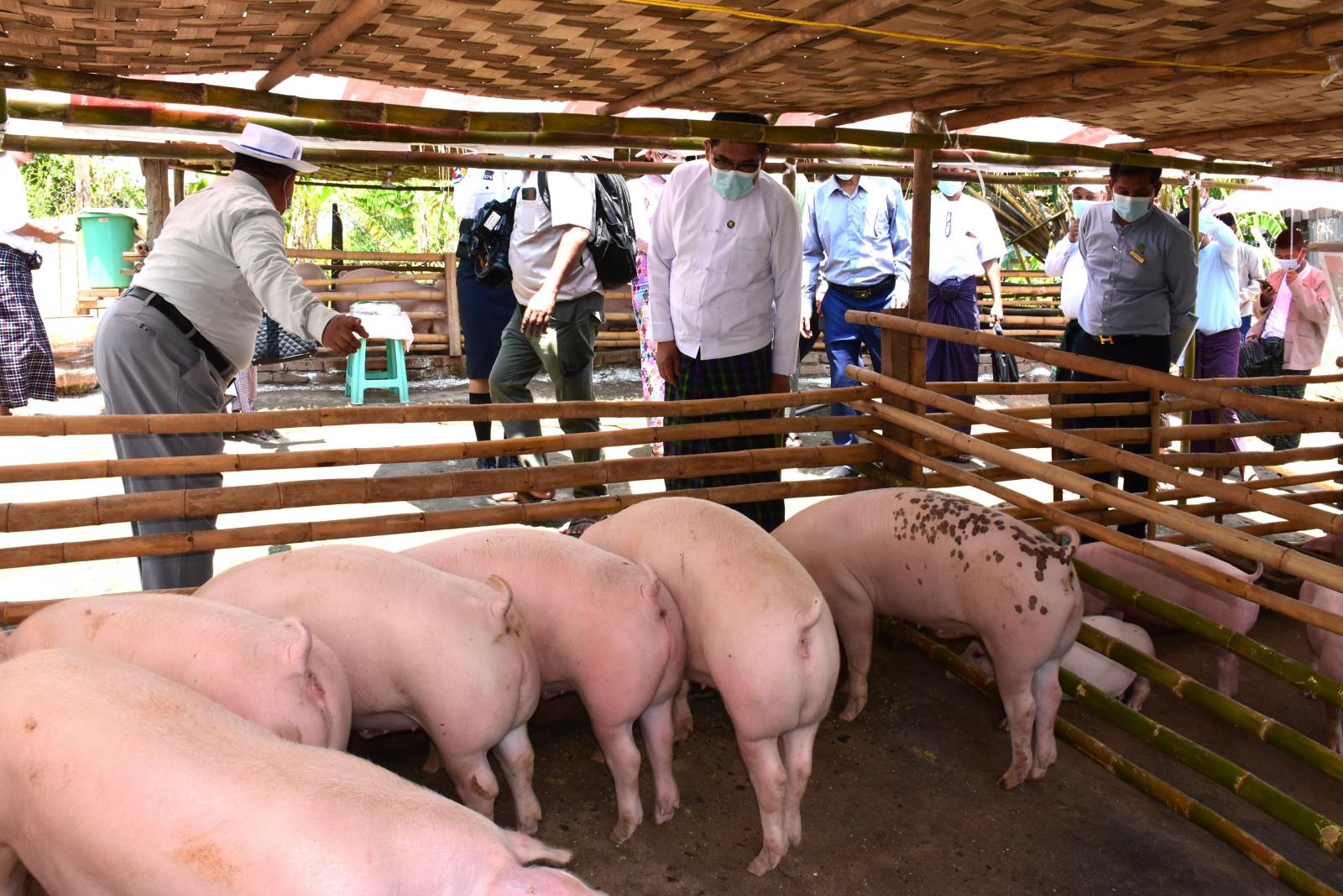 ထို့နောက် ပြည်နယ်ဝန်ကြီးချုပ်နှင့် အဖွဲ့ဝင်များသည် ဘုန်းတော်ကြီးကျောင်း ကျောင်းထိုင်ဆရာတော်အား ဖူးမျှော်ကြည်ညိုကာ ကျေးရွာအတွင်း နိုင်ငံ့စီးပွားမြှင့်တင်ရေး ရန်ပုံငွေဖြင့် ဆောင် ရွက်လျက်ရှိသည့် အခြေအနေများကို လျှောက်ထားတင်ပြပြီး အလှူငွေနှင့် လှူဖွယ်ပစ္စည်းများကို ဆက်ကပ်လှူဒါန်းခဲ့ကြကာ ကျေးရွာအတွင်း တောင်သူများ၏ နေအိမ်ခြံဝင်းများတွင် မိသားစုတစ်ပိုင် တစ်နိုင် ဝက်နှင့် နွားများ မွေးမြူထားရှိမှု အခြေအနေနှင့် အကျိုးအမြတ်ဖြစ်ထွန်းမှု အခြေအနေများကို လှည့်လည်ကြည့်ရှုစစ်ဆေးခဲ့ကြကာစ မွေးမြူရေးအထောက်အကူပြုဆေးဝါးများကို ထောက်ပံ့ပး အပ်ခဲ့ကြသည်။