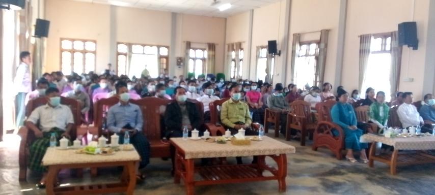 အဆိုပါ အခမ်းအနားသို့ မြို့နယ်စီမံအုပ်ချုပ်ရေးအဖွဲ့ဥက္ကဋ္ဌ ဦးခင်မောင်မြင့်နှင့် အဖွဲ့ဝင်များ၊ မြို့နယ်အဆင့်ဌာနဆိုင်ရာအကြီးအကဲများ၊ မြို့နယ်ရဲတပ်ဖွဲ့ဝင်များ၊ မြို့နယ်ပညာရေးမှူးရုံးမှ ပညာရေးမှူးနှင့်တာဝန်ရှိသူများ၊ မြို့နယ်အမျိုးသမီးရေးရာအဖွဲ့ဥက္ကဋ္ဌနှင့်အဖွဲ့ဝင်များ၊ မြို့နယ်မိခင်နှင့်ကလေးစောင့်ရှောက်ရေးအသင်းအဖွဲ့များ၊ ရပ်ကွက်အုပ်ချုပ်ရေးမှူးများ၊ ဘာသာရေးအသင်းအဖွဲ့များ၊ ကျောင်းကော်မတီဝင်များ၊ မြို့မိမြို့ဖများ၊ အခြေခံပညာကျောင်းမှ ကျောင်းအုပ်ကြီးများ၊ ဆရာ၊ဆရာမများ၊ ကျောင်းသားမိဘများနှင့် ကျောင်းသား/ကျောင်းသူများ စုစုပေါင်း(၂၅၀) ဦး ခန့်တက်ရောက်ခဲ့ကြောင်း သိရသည်။