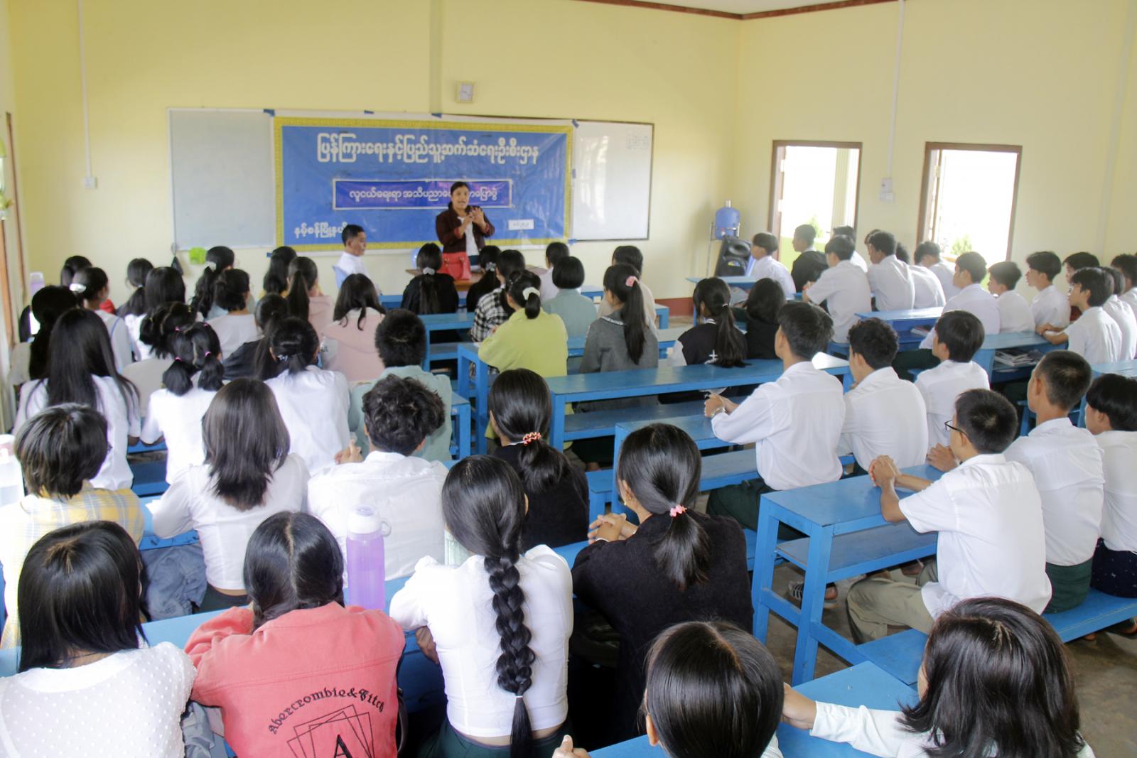 ရှမ်းပြည်နယ်တောင်ပိုင်း၊ နမ့်စန်ခရိုင်၊ နမ့်စန်မြို့နယ်တွင် ပြန်ကြားရေးနှင့်ပြည်သူ့ဆက်ဆံရေးဦးစီးဌာနနှင့် ပညာရေးဌာနတို့ပူးပေါင်းဆောင်ရွက်သော လူငယ်ရေးရာ အသိပညာပေးဟောပြောပွဲကို ယနေ့နံနက် ၉နာရီက မက်မွန်မုန်းကျေးရွာအုပ်စု၊ အမှတ်(၂)ကျေးရွာရှိ ပန်းပျိုးရတနာမြေ ကိုယ်ပိုင်အထက်တန်းကျောင်းတွင် ပြုလုပ်ခဲ့သည်။