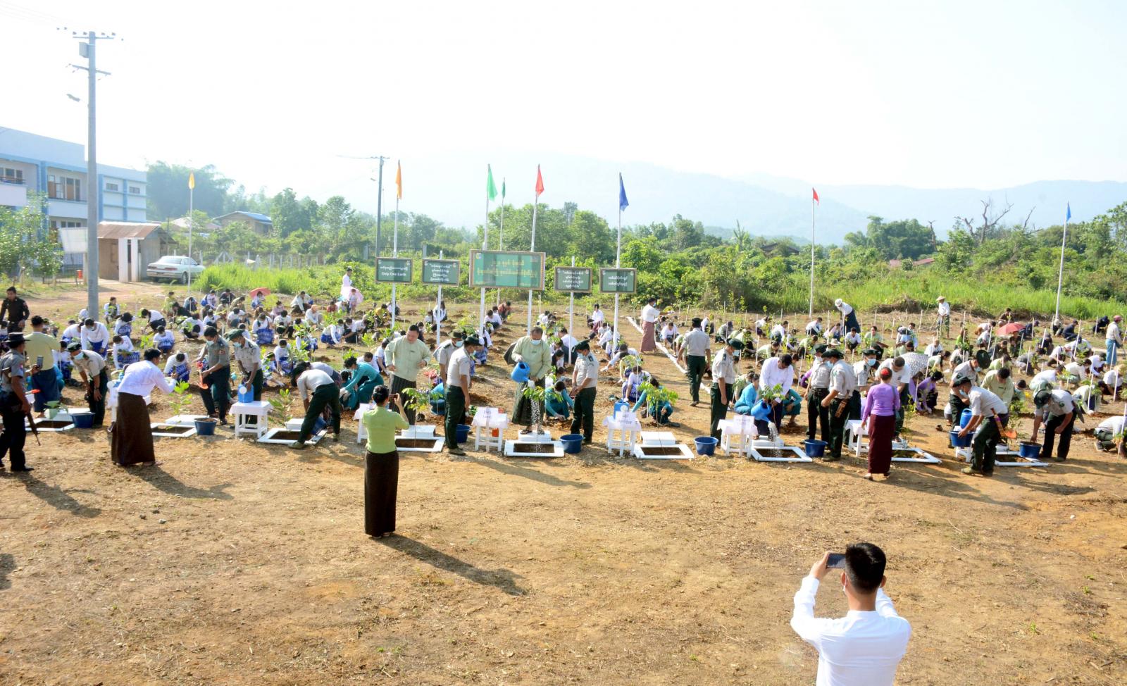 ထို့နောက် သစ်ပင်စိုက်ပျိုးကြရာတွင် တက်ရောက်လာကြသည့် ခရိုင်စီမံအုပ်ချုပ်ရေးအဖွဲ့ ဥက္ကဋ္ဌနှင့် အဖွဲ့ဝင်များ၊ မြို့နယ်စီမံအုပ်ချုပ်ရေးအဖွဲ့ ဥက္ကဋ္ဌနှင့် အဖွဲ့ဝင်များ၊ မြို့နယ်သစ်တောဦးစီးဌာနမှ မြို့နယ်ဦးစီးမှူး ဦးဇော်ကိုကိုဝင်းနှင့် ဝန်ထမ်းများ၊ ခရိုင်/မြို့နယ်ဌာနဆိုင်ရာများ၊ အစိုးရ စက်မှုလက်မှုသိပ္ပံကျောင်း(မိုးညှင်း)မှ ကျောင်းအုပ်ကြီးနှင့် ဆရာ/ဆရာမများ၊ ကျောင်းသား ကျောင်းသူများက အမြင့်နှစ်ပေအထက်ရှိသော ကျွန်းပင် (၅၀)၊ ပျဉ်းကတိုးပင် (၅၀)၊ ခရေပင် (၅၀)၊ မျောက်ငိုပင် (၅၀)၊ မန်ဂျာရှားပင် (၅၀)နှင့် ကံ့ကော်ပင် (၅၀) စုစုပေါင်းပျိုးပင် (၃၀၀)တို့ကို သတ်မှတ် နေရာများတွင် တပျော်တပါး စုပေါင်းစိုက်ပျိုးခဲ့ကြကြောင်း သိရသည်။
