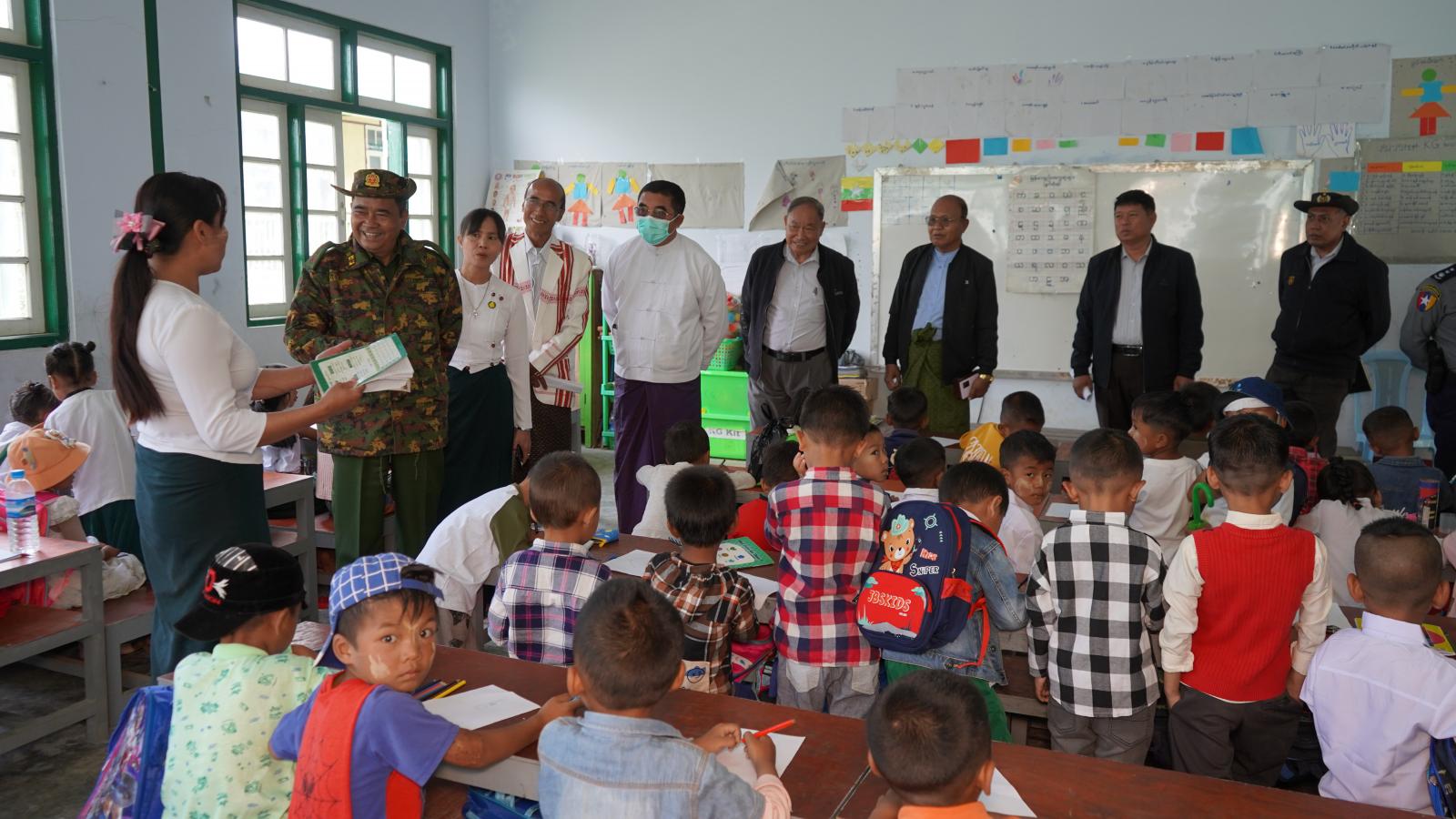 ထို့နောက် စာသင်ခန်းများသို့သွားရောက်ပြီး ကျောင်းသား၊ သူများက အေးချမ်းစွာ ပညာ သင်ကြားနေမှုကို ကြည့်ရှုကာ ကျောင်းသား/သူများအနေဖြင့် အတန်းပညာသာမက စိတ်ဓာတ်၊ စည်းကမ်းနှင့် အကျင့်စာရိတ္တများ ကောင်းမွန်ရန်လိုအပ်ကြောင်း၊ ကောင်းမွန်သော ရည်ရွယ်ချက်၊ ရည်မှန်းချက်များထားရှိ၍ ကျန်းမာရေးကောင်းမွန်အောင် လေ့ကျင့်ခန်းပြုလုပ်ခြင်းနှင့် ကျန်းမာရေး ထိခိုက်စေသည့် မူးယစ်ဆေးဝါးနှင့် ဖုန်းအလွန်အကျုံသုံးစွဲခြင်းများကို ရှောင်ရှားကာ ကျန်းမာရေးနှင့် ညီညွှတ်သည့် အစားအစားများကိုသာ စားသုံးရန်လိုအပ်ကြောင်း ပြောကြားသည်။