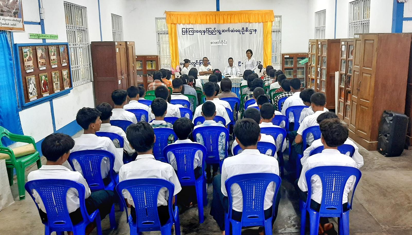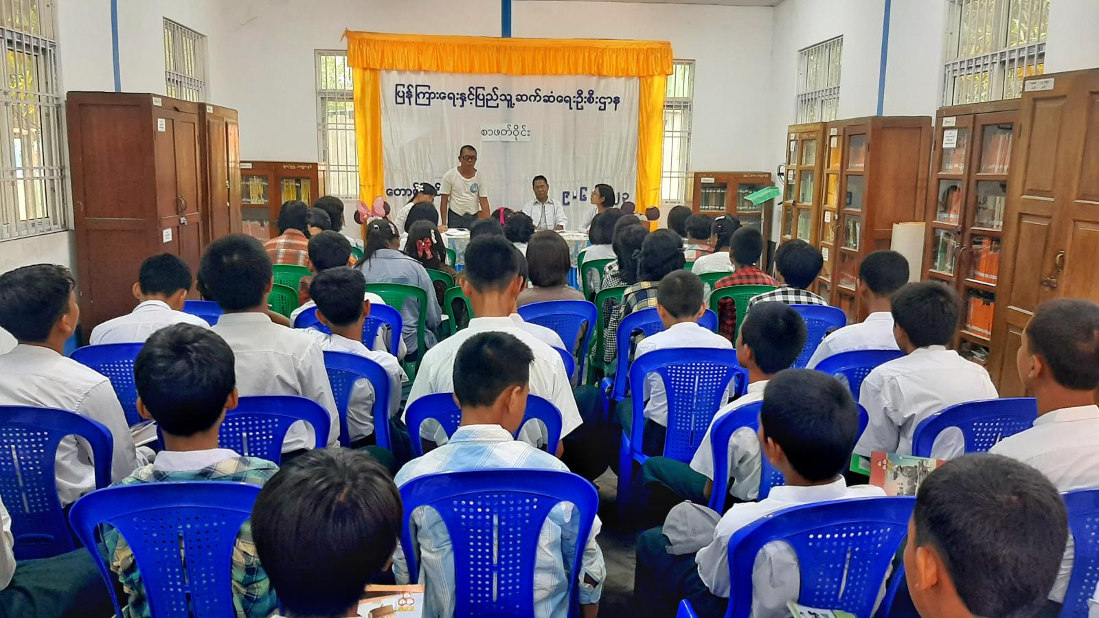 ရှေးဦးစွာ မြို့နယ် ပြန်/ဆက်ဦးစီးဌာန ဦးစီးအရာရှိ ဒေါ်အေးမိုးမိုးမြင့်က ကျောင်းသား၊ ကျောင်းသူ ကလေးငယ်များအနေဖြင့် ကျောင်းသင်ခန်းစာများကို ကြိုးစားသင်ယူလေ့လာရန်လိုအပ်သကဲ့သို့ ပြင်ပဗဟုသုတရရှိစေမည့် စာအုပ်စာပေများကိုလည်း လေ့လာဖတ်ရှု့မှတ်သားရန် လိုအပ်ပါကြောင်း၊ ကျောင်းသား၊ ကျောင်းသူ ကလေးငယ်များသည် အနာဂတ်လူငယ်များဖြစ်ပါကြောင်း၊ နိုင်ငံ့တာဝန်များကို ပခုံးပြောင်းထမ်းဆောင်ကြရမည့် အနာဂတ်လူငယ်များဖြစ်သည့်အတွက် အသိပညာ၊ အတက်ပညာများ ဖွံ့ဖြိုးတိုးတက်စေရန် လိုအပ်ပါကြောင်း ဆွေးနွေးပြောကြားခဲ့သည်။