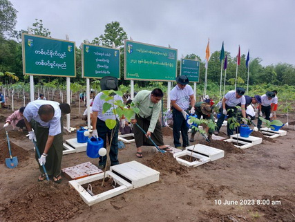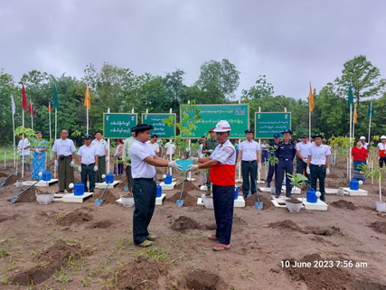 ၄င်းနောက် မြို့နယ်စီမံအုပ်ချုပ်ရေးအဖွဲ့ဥက္ကဋ္ဌနှင့် မြို့နယ်ဌာနဆိုင်ရာဝန်ထမ်းများ၊ ရပ်ကွက်နေ ပြည်သူများ၊ လူမှုကူညီရေးအသင်းအဖွဲ့တို့ ပူးပေါင်း၍ ကျွန်း၊ ပျဉ်းကတိုး၊ ပိတောက်၊ မန်ဂျန်ရှား၊ မဟော်ဂနီ၊ ခရေ၊ ကံကော်၊ တေပဘူတ စသည့်ပျိုးပင်စုစုပေါင်း အပင်ရေ (၄၀၀) ခန့်ကို စိုက်ပျိုးခဲ့ ကြောင်းနှင့် ယနေ့စိုက်ပျိုးခြင်းမှာ ဒုတိယအကြိမ်ဖြစ်ကြောင်း သိရသည်။
