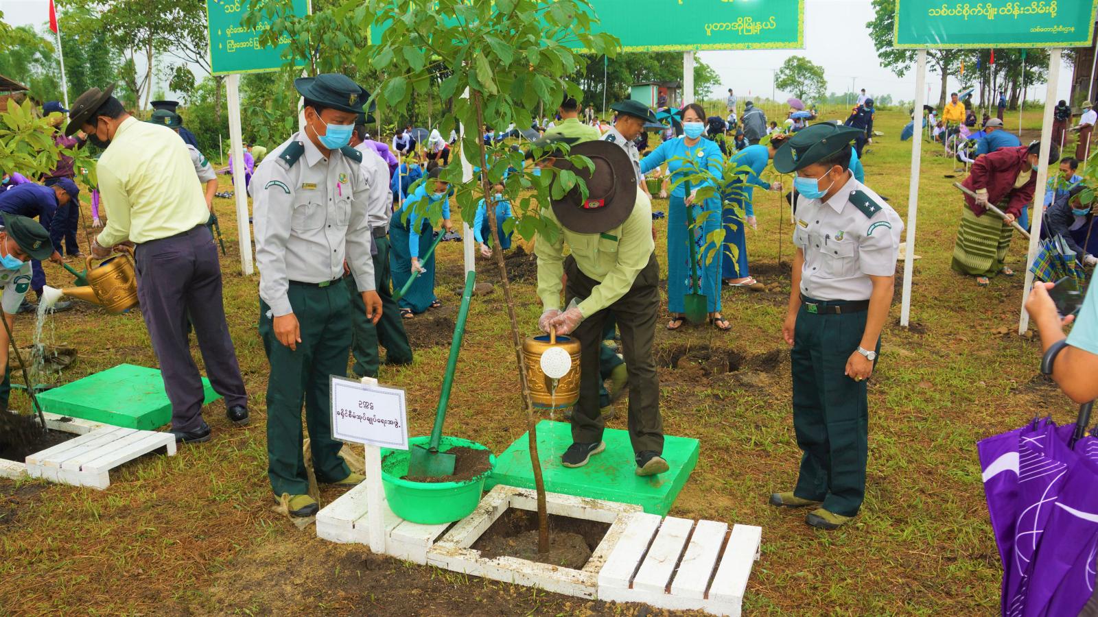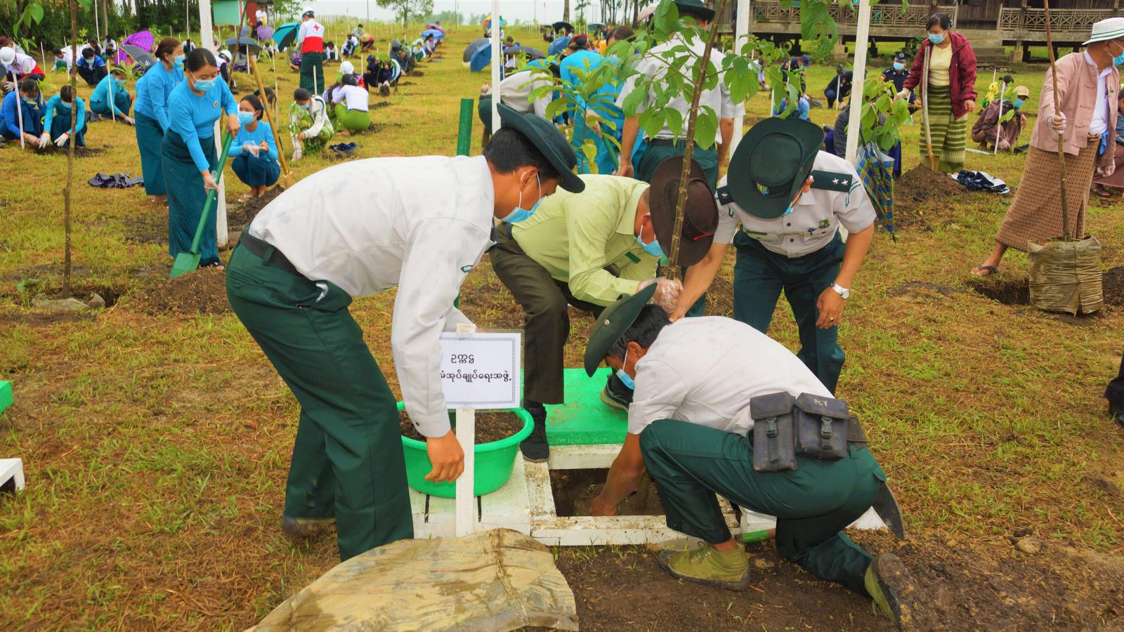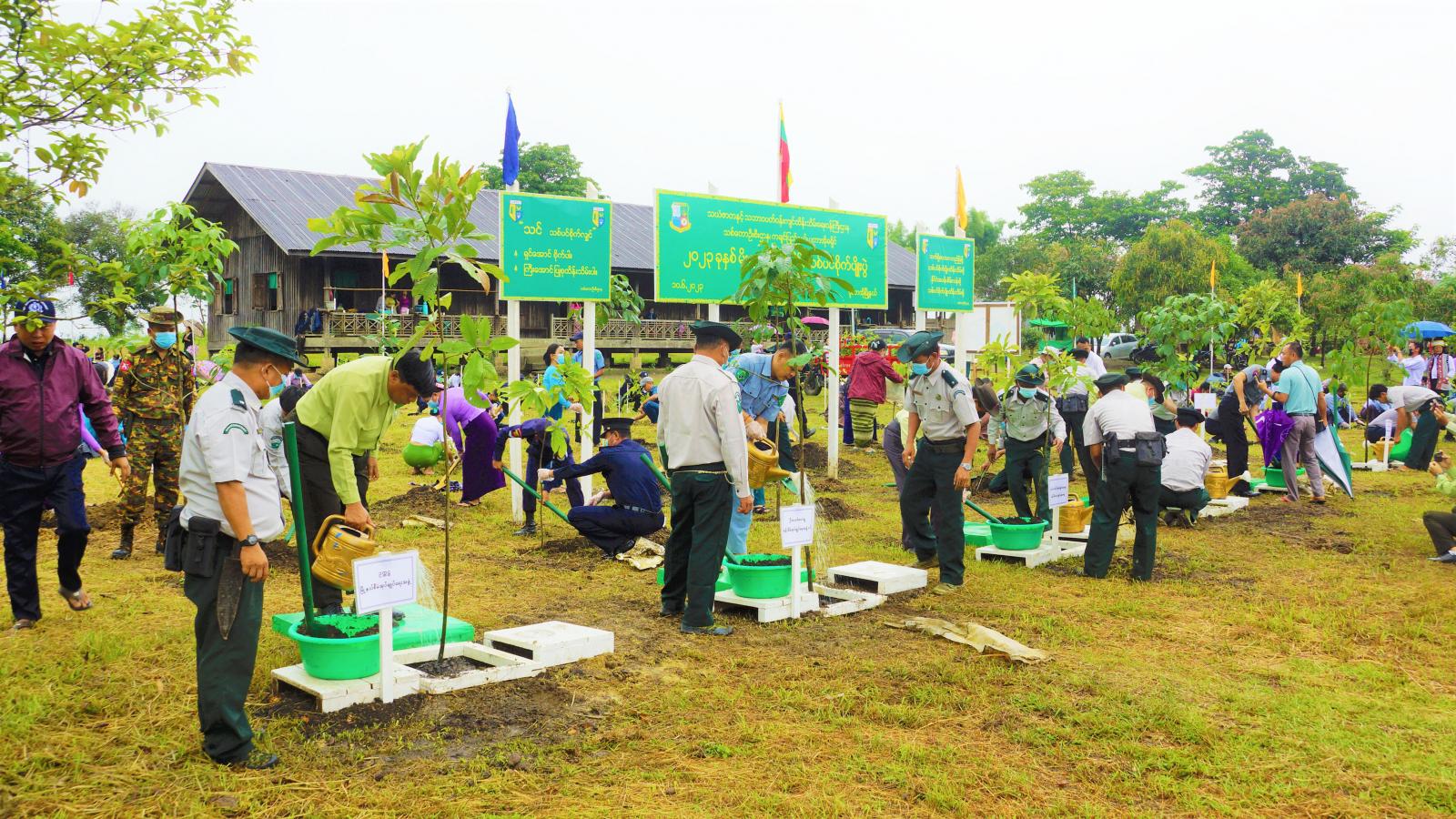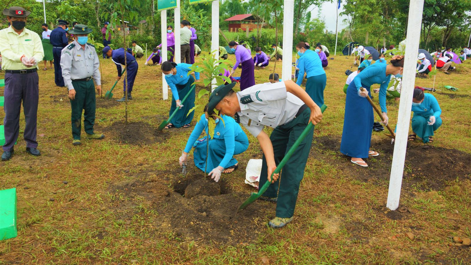 ဆက်လက်၍ ခရိုင်စီမံအုပ်ချုပ်ရေးအဖွဲ့ ဉက္ကဋ္ဌ နှင့်အဖွဲ့ဝင်များ၊မြို့နယ်စီမံအုပ်ချုပ်ရေးအဖွဲ့ ဉက္ကဋ္ဌနှင့် အဖွဲ့ဝင်များ၊ ခရိုင်/မြို့နယ်ဌာနဆိုင်ရာများ၊ လူမှုရေးအသင်းအဖွဲ့များ၊ ဒေသခံပြည်သူအစုအဖွဲ့ပိုင်သစ်တော အသုံးပြုသူများအဖွဲ့၊ တိုင်းရင်းသားစာပေနှင့် ယဉ်ကျေးမှုအဖွဲ့များ၊ ကျောင်းဆရာဆရာမများနှင့် ကျောင်းသားကျောင်းသူများ၊ ကျေးရွာနေပြည်သူများက သတ်မှတ်ထားသောနေရာများတွင် သစ်အယ်အပင်(၅၀၀)၊ ရေပိတုန်းအပင်(၅၀၀)၊ ပျဉ်းကတိုးအပင်(၁၀၀)၊ လောက်ယားအပင်(၁၀၀)၊ တောင်တမာအပင်(၂၀၀)၊ မန်ဂျန်ရှား အပင်(၁၀၀)စုစုပေါင်းအရိပ်ရအပင်(၁၅၀၀)ပင်ကို တပျော်တပါးစုပေါင်းစိုက်ပျိုးခဲ့ကြပြီး ခရိုင်စီမံအုပ်ချုပ်ရေးအဖွဲ့ဉက္ကဋ္ဌနှင့် တာဝန်ရှိသူများက စုပေါင်းသစ်ပင်စိုက်ပျိုးနေမှုများကို လှည့်လည်ကြည့်ရှု အားပေးကြသည်။