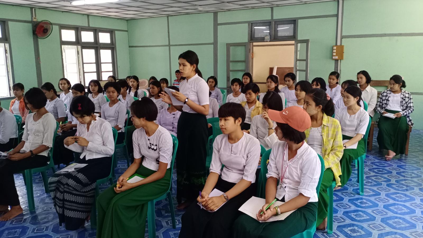 စာဖတ်ဝိုင်းဆွေးနွေးပွဲတွင် ခရိုင်ပြန်ကြားရေးနှင့်ပြည်သူ့ဆက်ဆံရေးဦးစီးဌာန လက်ထောက်ညွှန်ကြားရေးမှူး ဒေါ်နန်းမြင့်က စာဖတ်ရှိန်မြှင့်တင်ရေး စာဖတ်ဝိုင်းများ ကျင်းပပြုလုပ်ရခြင်း ရည်ရွယ်ချက်များကို ရှင်းလင်း ပြောကြားသည်။