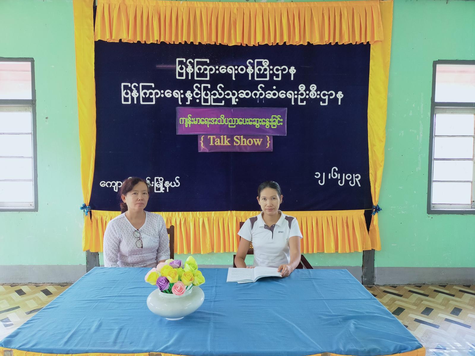 ရန်ကုန်တိုင်းဒေသကြီး၊ သန်လျင်ခရိုင်၊ ကျောက်တန်းမြို့နယ်တွင် ကျန်းမာရေးအသိပညာပေးဆွေးနွေးပွဲ (Talk show)ကို ယနေ့နံနက်(၁၀)နာရီက ကျောက်တန်းမြို့ ပြန်ကြားရေးနှင့်ပြည်သူ့ဆက်ဆံရေးဦးစီးဌာန လူထုအခြေပြုဗဟိုဌာန (Community Centre)၌ ကျင်းပခဲ့ကြသည်။