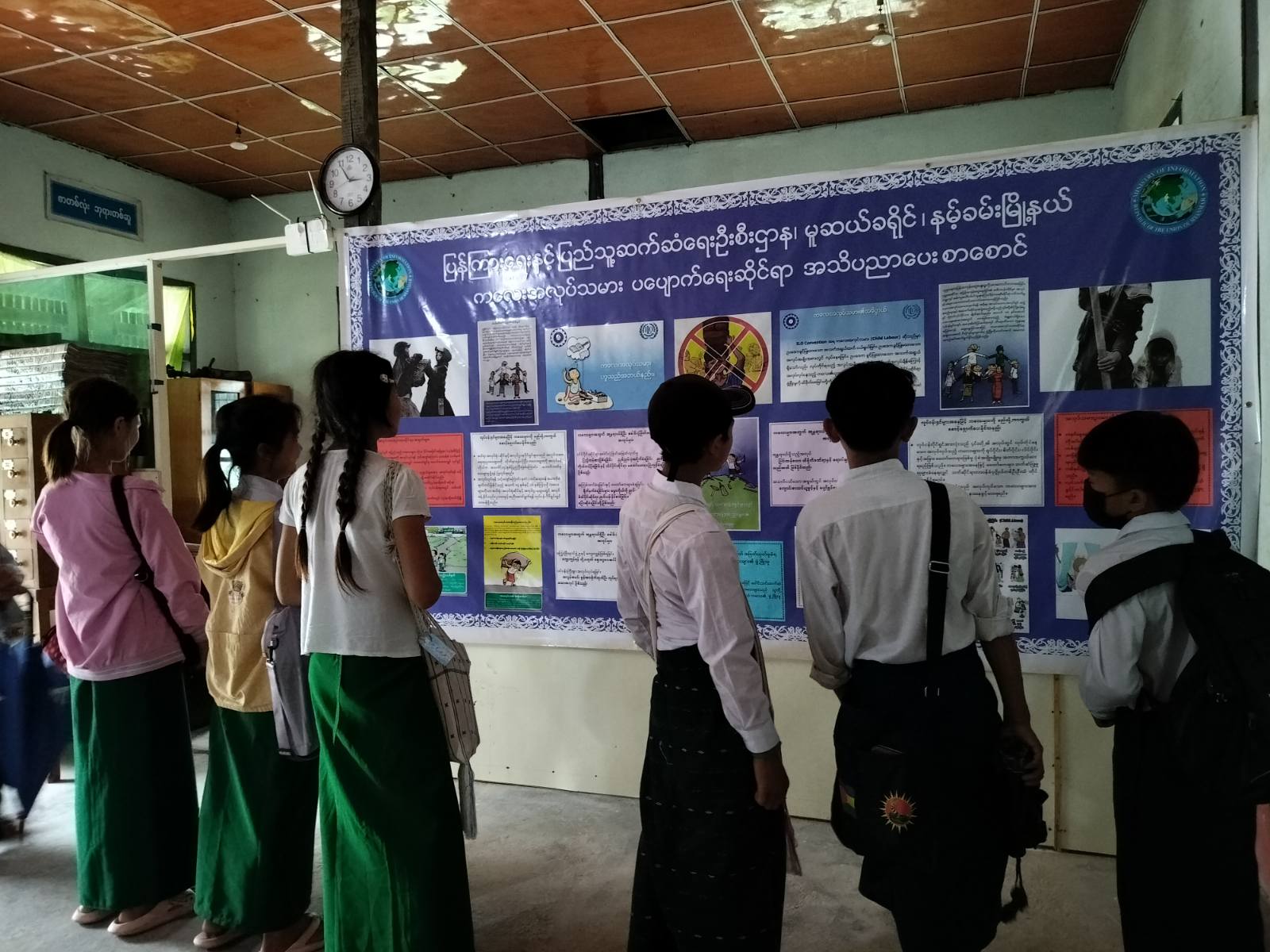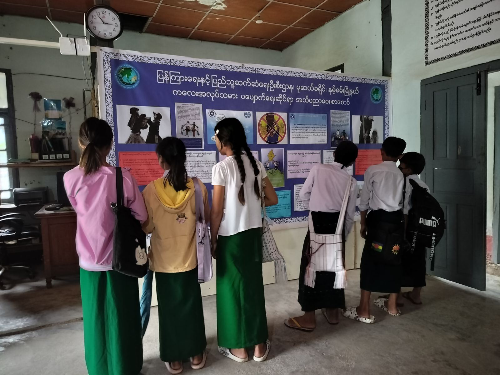 အဆိုပါ အသိပညာပေး နံရံကပ်စာစောင်ပြပွဲတွင် မူးယစ်ဆေးဝါး၏ အဓိပ္ပါယ်၊ မူးယစ်ဆေးဝါး၏ သမိုင်းကြောင်းနှင့် သုံးစွဲပုံအဆင့်ဆင့်ပြောင်းလဲလာပုံများ၊ မူးယစ်ဆေးသုံးစွဲရခြင်း အကြောင်းအရင်းများ၊ မူးယစ်ဆေးဝါးသုံးစွဲမှုကြောင့် ဖြစ်ပေါ်လာသော ဆိုးကျိုးများ၊ မူးယစ်ဆေးထိုးရသည့် အကြောင်းအရင်းများနှင့် မူးယစ်ဆေးမထိုးသုံးဘဲ အခြားပြုလုပ်သင့်သည့် နည်းလမ်းများ၊ မူးယစ်ဆေးဝါးအမျိုး အစားများနှင့် ဆိုးကျိုးအန္တရာယ်များ၊ သုံးစွဲမိပါကစိတ်ပိုင်းဆိုင်ရာထိခိုက်မှု၊ ခန္ဓာကိုယ်ပိုင်းဆိုင်ရာထိခိုက်မှု၊ လူမှုရေးဆိုင်ရာထိခိုက်မှု၊ ရရှိလာမည့်ဆိုးကျိုးများအကြောင်း စသည့်တို့ပါရှိသည့် အသိပညာပေး နံရံကပ်စာစောင်ကို ကျောင်းသားလူငယ်များအား အသိပညာပေးပြသခြင်းအား မြို့နယ်ရုံး ဝန်ထမ်းများက ဆောင်ရွက်ပေးခဲ့ကြောင်း သိရသည်။