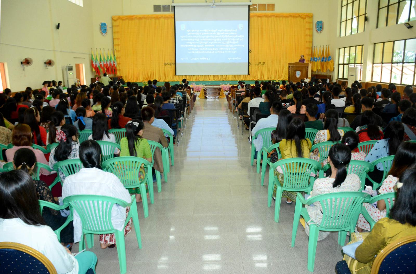 ထိုင်းနိုင်ငံနှင့် လာအိုနိုင်ငံတို့တွင် ကျင်းပခဲ့သည့် ဒုတိယအကြိမ် မူးယစ်ဆေးဝါး ကြိုတင်ကာကွယ်ရေး လုပ်ငန်းအစီအစဉ်ဆိုင်ရာ လူငယ်ကွန်ယက်သို့ ကိုယ်စားလှယ်အဖြစ် တက်ရောက်ခဲ့သော ကျောင်းသားတစ်ဦးနှင့် ကမ္ဘောဒီးယားနိုင်ငံတွင် ကျင်းပခဲ့သည့် (၃၂)ကြိမ်မြောက် SEA GAMES ပြိုင်ပွဲ၌ ဗိုဗီနမ်အားကစားပြိုင်ပွဲတွင် တတိယဆုများရရှိခဲ့သော ကျောင်းသူတစ်ဦးတို့၏ အတွေ့အကြုံ ရှင်းလင်းပွဲနှင့် ဂုဏ်ပြုပွဲအခမ်းအနားကို ယနေ့ နံနက် (၉)နာရီက ကချင်ပြည်နယ် မိုးညှင်းတက္ကသိုလ် ရတနာခန်းမ၌ ကျင်းပသည်။