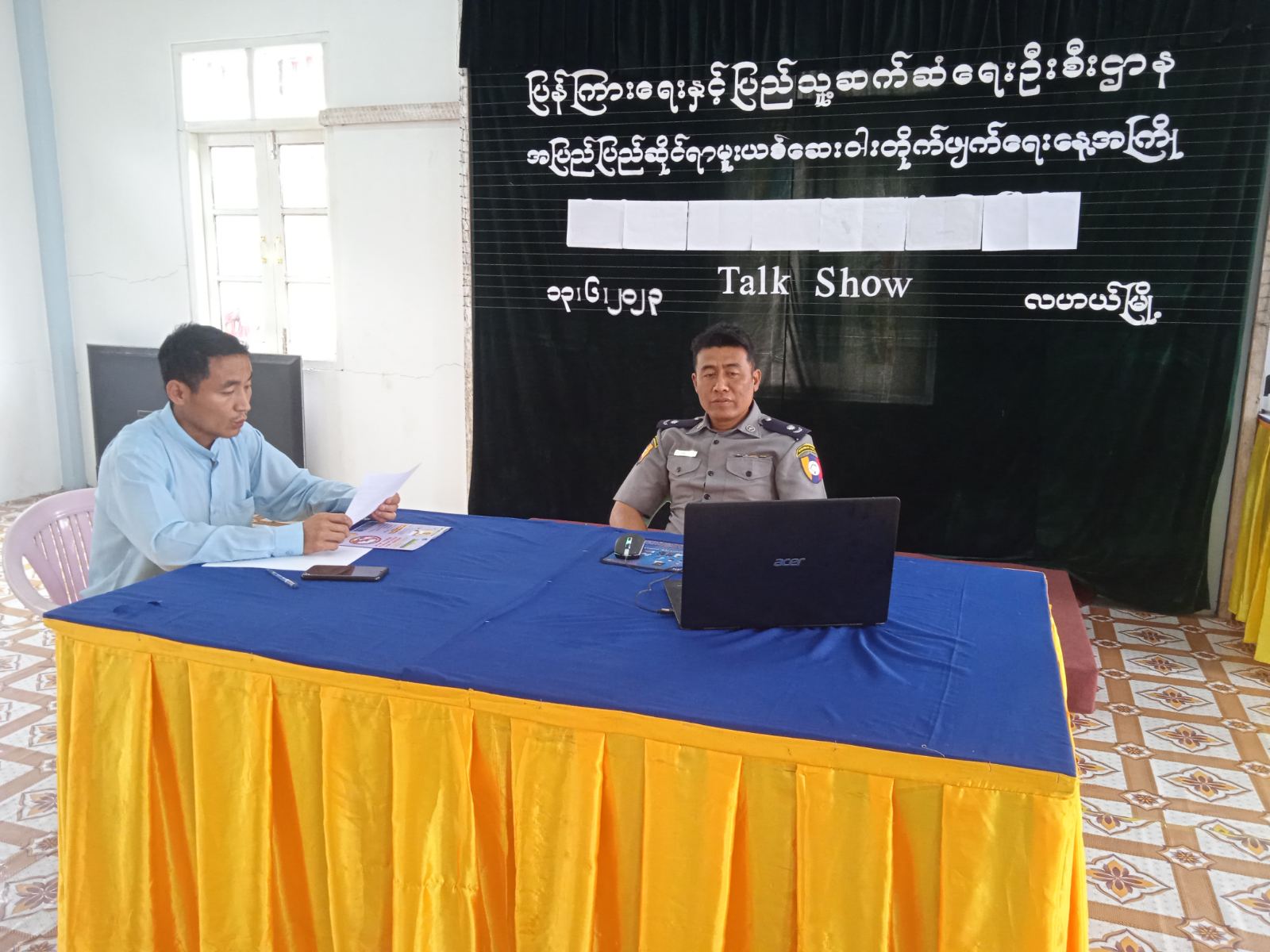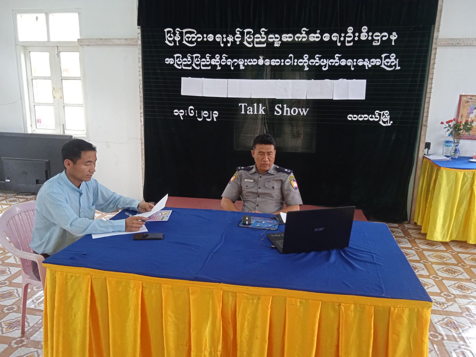 အဆိုပါ ၂၀၂၃ခုနှစ်၊ ဇွန်လ (၂၆) ရက်နေ့တွင်ကျရောက်မည့် အပြည်ပြည်ဆိုင်ရာမူးယစ်ဆေးဝါးအလွဲသုံးစားမှုနှင့် တရားမဝင်ရောင်ဝယ်တိုက်ဖျက်ရေးနေ့ အကြို Talk Show ဆွေးနွေးပွဲကို လဟယ်မြို့နယ်ဦးစီးမှူးဦးရှားဆက်နှင့် မြန်မာနိုင်ငံရဲတပ်ဖွဲ့မြို့နယ်ရဲတပ်ဖွဲ့မှူး ရဲမှူးရန်အေး တို့ကအသိပညာပေးဆွေးနွေးခဲ့ကြောင်းသိရှိ ရပါသည်။
