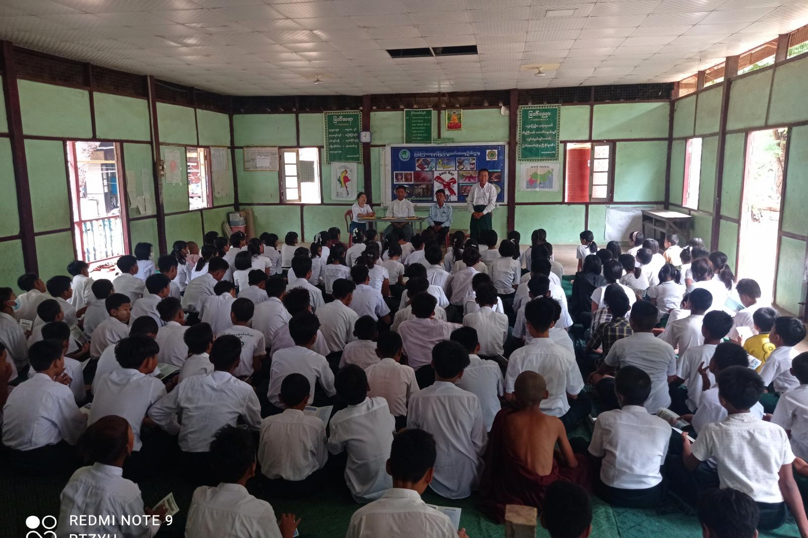 ထို့နောက် ခရိုင်ပြန်/ဆက်ဦးစီးဌာန လက်ထောက်ညွှန်ကြားရေးမှူး ဦးကျော်မင်းဦးက ၂၀၂၃ ခုနှစ် ဇွန်လ ၂၆ ရက်နေ့တွင် ကျရောက်မည့် အပြည်ပြည်ဆိုင်ရာ မူးယစ်ဆေးဝါးအလွဲသုံးမှုနှင့် တရားမဝင်ရောင်းဝယ်မှုတိုက်ဖျက်ရေးနေ့အထိမ်းအမှတ်အဖြစ် မူးယစ်ဆေးဝါးအန္တရာယ်နှင့် ကျောင်းသားလူငယ်များ သိရှိလိုက်နာသင့်သည့် အချက်များ၊ မူးယစ်ဆေးသုံးစွဲရခြင်း အကြောင်းရင်းနှင့် သုံးစွဲမိပါက အန္တရာယ်ရှိပုံများ၊ မြို့နယ် ပြန်/ဆက်ဦးစီးဌာနမှ ဦးစီးအရာရှိ ဒေါ်မေသန္တာအောင်က ကျောင်းသားများ၏ ကျောင်းသင်ခန်းစာများအပြင် အခြားဗဟုသုတ ရရှိစေမည့် သုတ၊ ရသ၊ ဝတ္ထု၊ မဂ္ဂဇင်း စသော စာအုပ်၊ စာပေများလည်း များများဖတ်ရှု ပေးစေလိုကြောင်းနှင့် စာပေဖတ်ရှုရခြင်း၏ အကျိုးကျေးဇူးများ၊ စားသုံးရေးရာဦးစီးဌာနမှ မြို့နယ်ဦးစီးမှူး ဦးမြင့်ကြည်က စားသောက်ကုန်ပစ္စည်းပေါ်မှ ကုန်ညွှန်းအမှတ်အသား၊ ထုတ်လုပ်သည့် ရက်စွဲ၊ စားသုံးရန် သင့်၊ မသင့်နှင့် စားသုံးသည့် စားသောက်ကုန်ပစ္စည်းများ၏ ရရှိလာမည့် အကျိုးအပြစ်များကို ကျောင်းသား၊ ကျောင်းသူလေးများအား အသိပညာပေး ဟောပြောခဲ့ကြောင်း သိရသည်။
